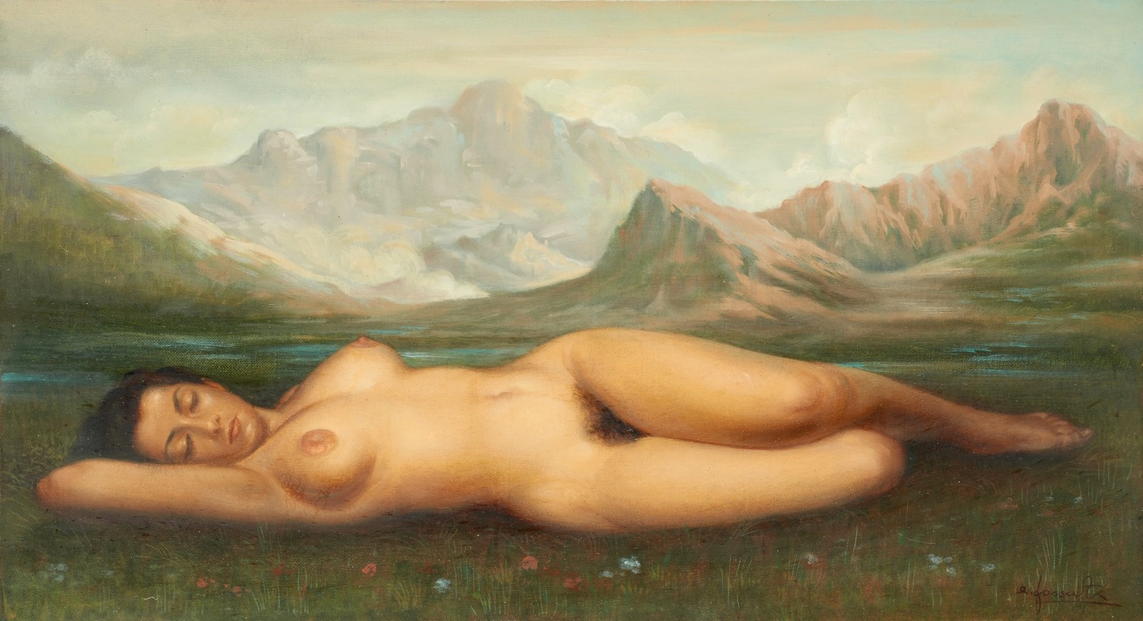 Emilio Fossati, XIX-XX век_Обнаженная на фоне гор (Nu sur fond de montagne)_30 х 55_х.,м._Частное собрание