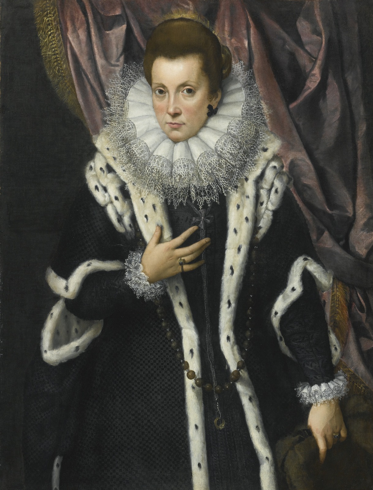 Итальянская школа (Central Italian School), XVI век_Портрет дамы (Portrait Of A Lady, Three-Quarter Length)_105.1 х 80.2_х.,м._Частное собрание