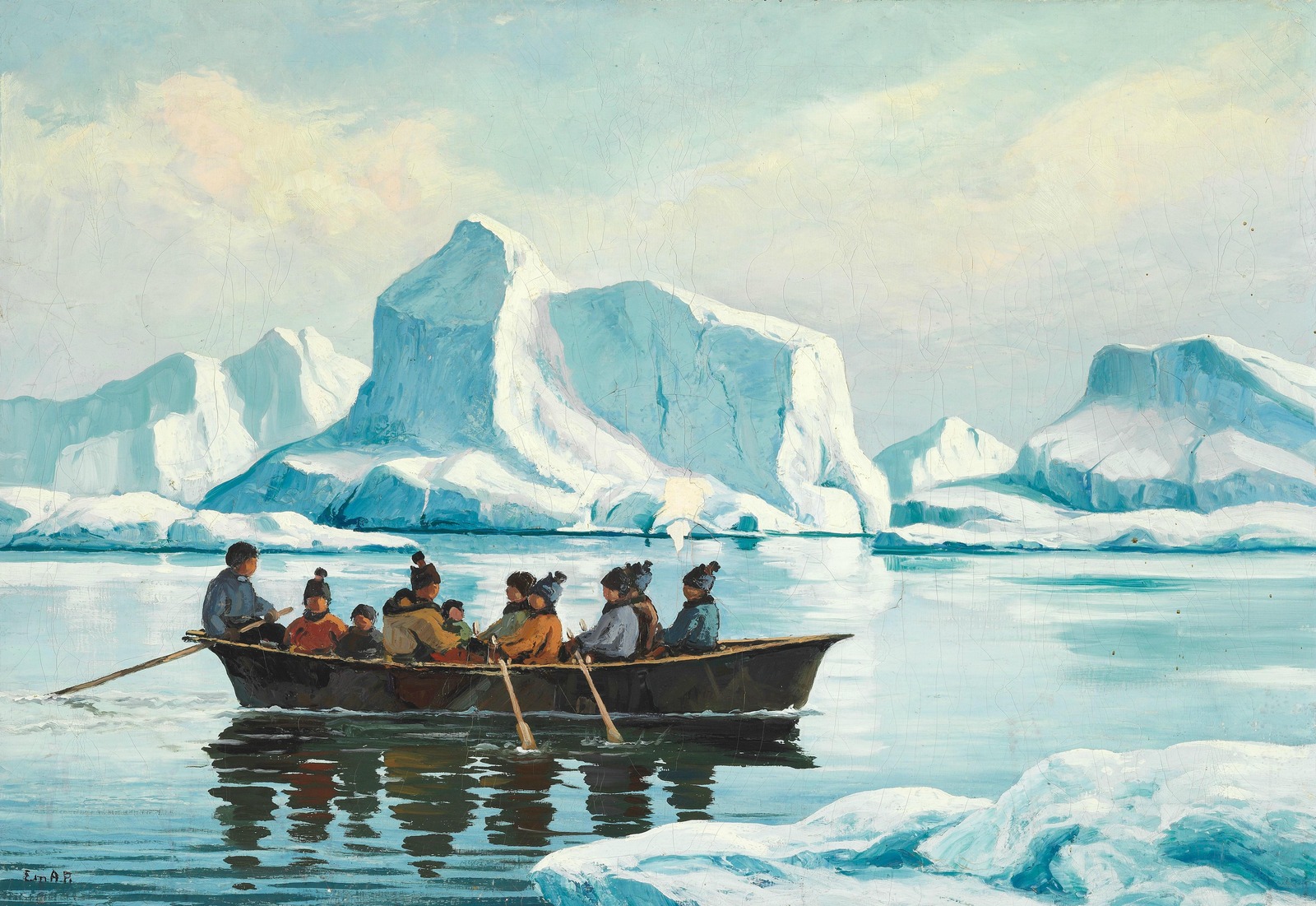 Умиак в гренландском фьорде (Umiak in a Greenlandic fjord)_70 х 100_х.,м._Частное собрание