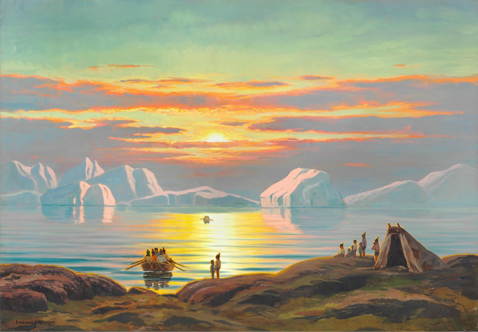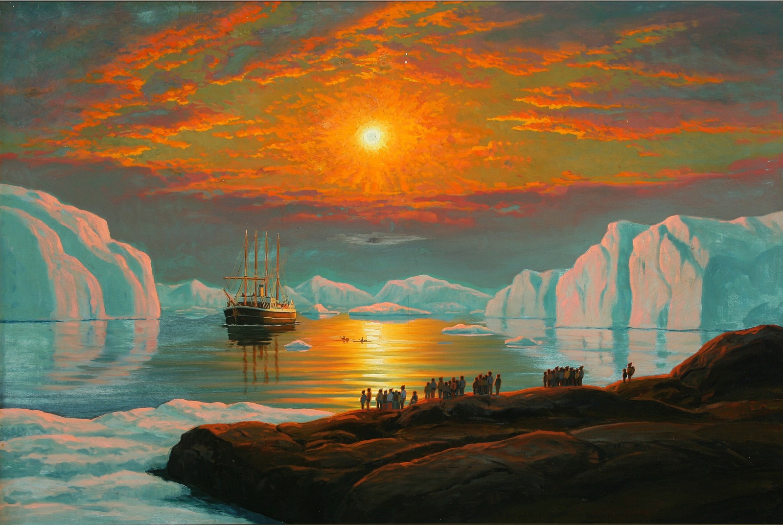 [показать]1936_Гренландский фьорд во дни летнего солнцестояния (View of a Greenlandic fiord lit up by the midsummer sun)_110 х 161_х.,м._Частное собрание