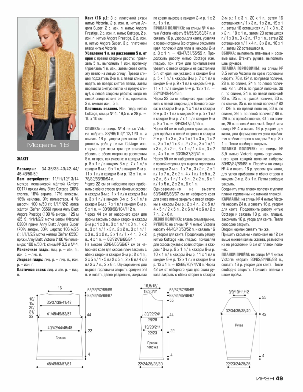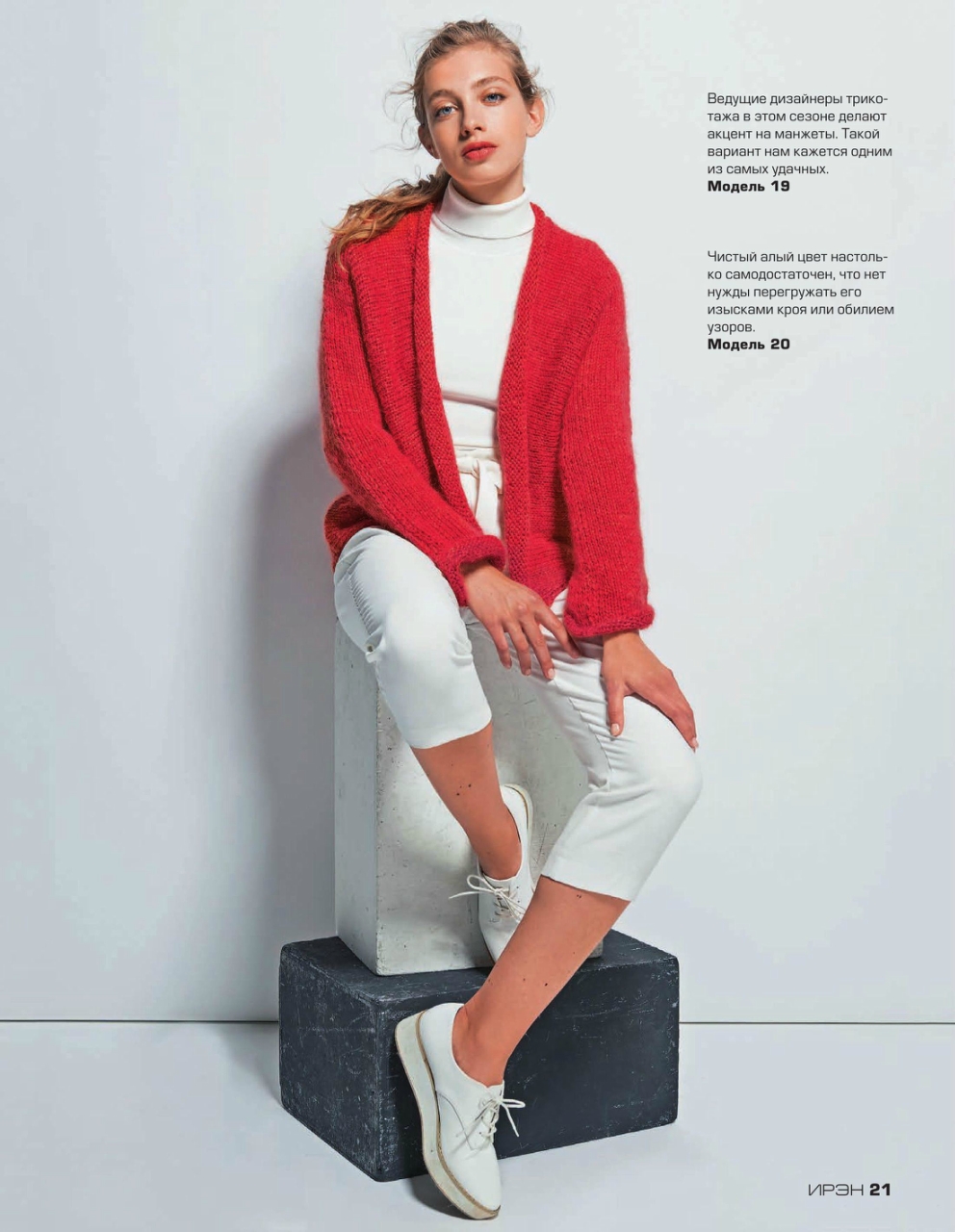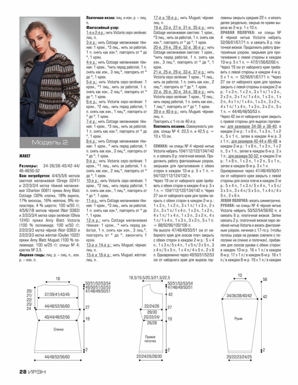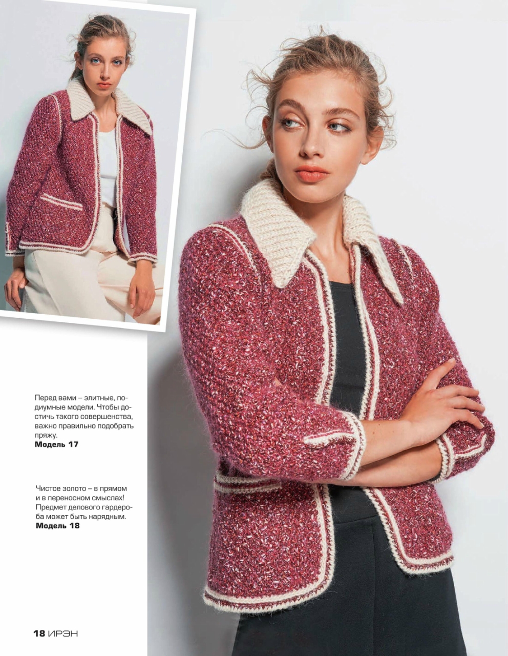 Журнал «Ирэн» №5 2017. Популярный российский журнал для всех, кто умеет вязать крючком и спицами, посвященный европейской вязаной моде, представленной уникальными разработками модельеров и дизайнеров с мировым именем, а также производителей пряжи. Данный очередной выпуск журнала демонстрирует эксклюзивную коллекцию вязаной одежды, выполненную из высококачественной элитной пряжи европейских производителей. Все модели, публикуемые в журнале «Ирэн» — это настоящая высокая мода.