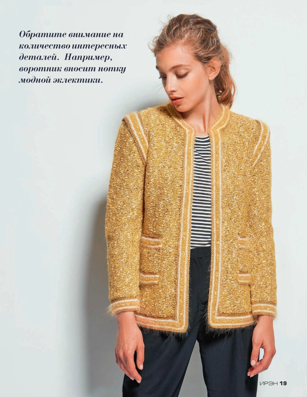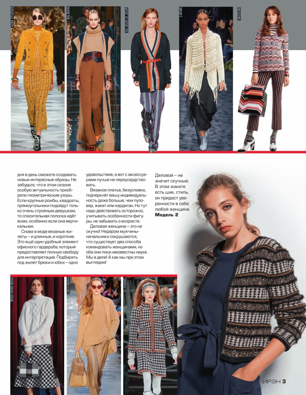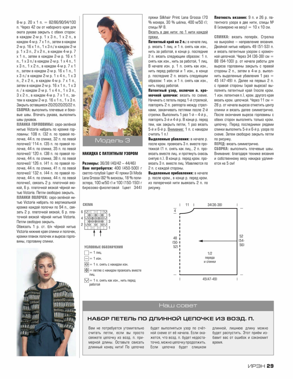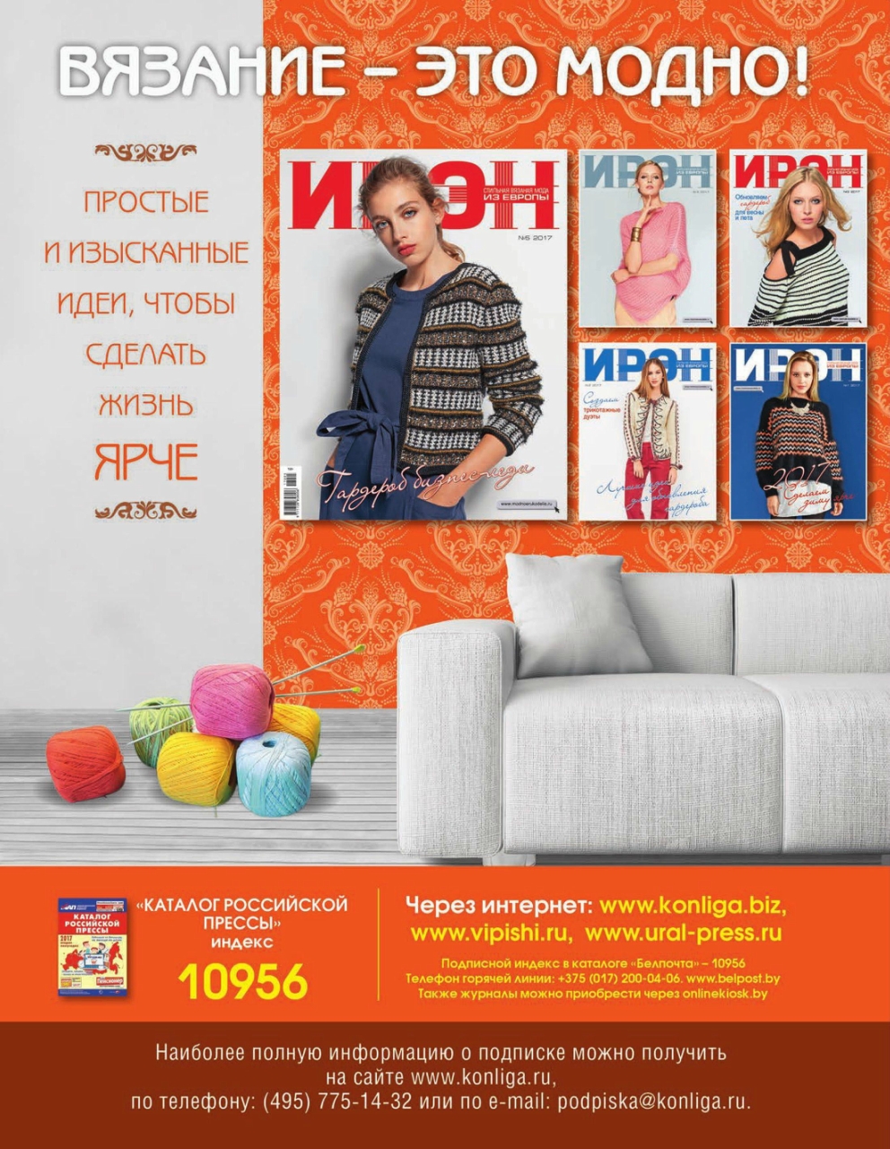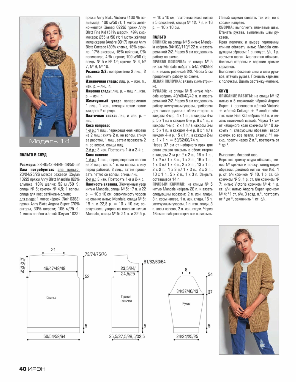 Журнал «Ирэн» №5 2017. Популярный российский журнал для всех, кто умеет вязать крючком и спицами, посвященный европейской вязаной моде, представленной уникальными разработками модельеров и дизайнеров с мировым именем, а также производителей пряжи. Данный очередной выпуск журнала демонстрирует эксклюзивную коллекцию вязаной одежды, выполненную из высококачественной элитной пряжи европейских производителей. Все модели, публикуемые в журнале «Ирэн» — это настоящая высокая мода.