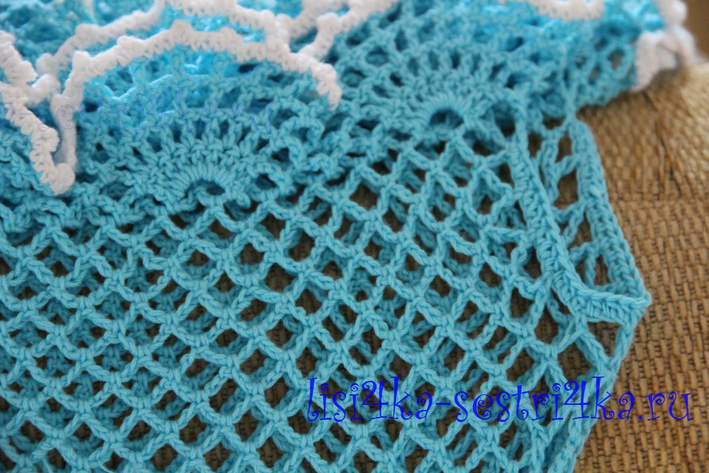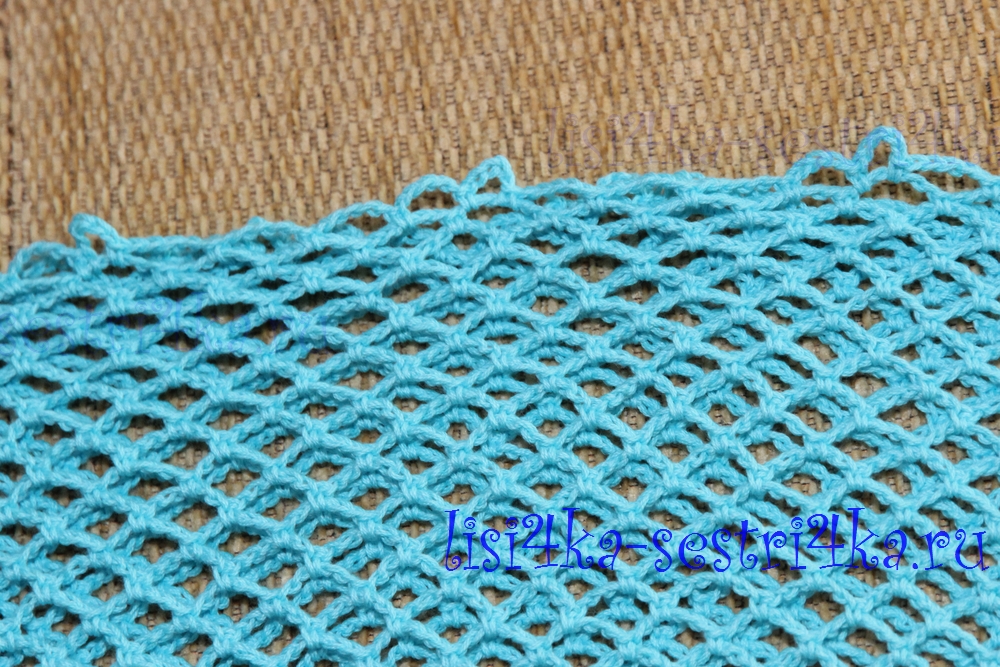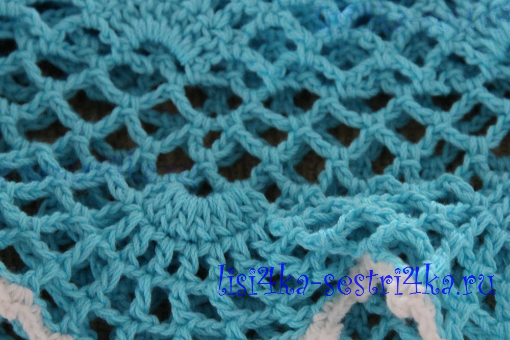 Затем вяжем четыре ряда из воздушных арочек. И с пятого ряда начинаем вязать столбики. Количество рядов из арочек влияет на то, как оборки будут выглядывать друг из под друга.