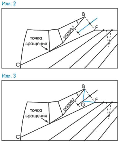 Илл. 4 Разрежьте лекало но всем линиям разрезов и разведите на величину, равную длине отрезка ВF