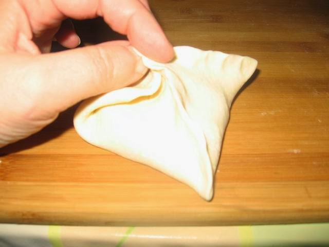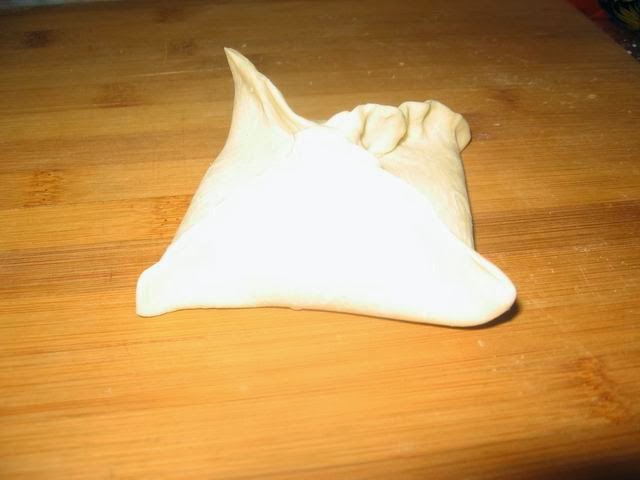 Потом все концы слоечки прижимаем к центру. От того, как хорошо Вы защипали слоечку зависит 90% успеха, ведь при выпечке тесто начнёт раскрываться, как цветок. Все недочёты обернутся тем, что слойка просто ракроется полностью.