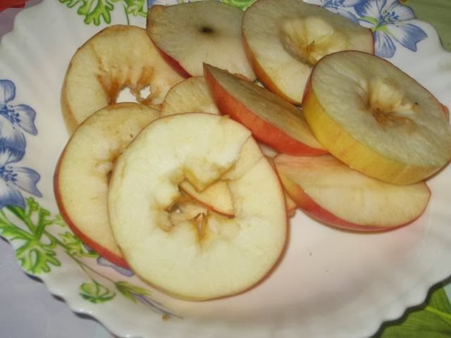 3. Нарезать яблоки кружочками или просто кусочками, вынуть семена, плодоножки.