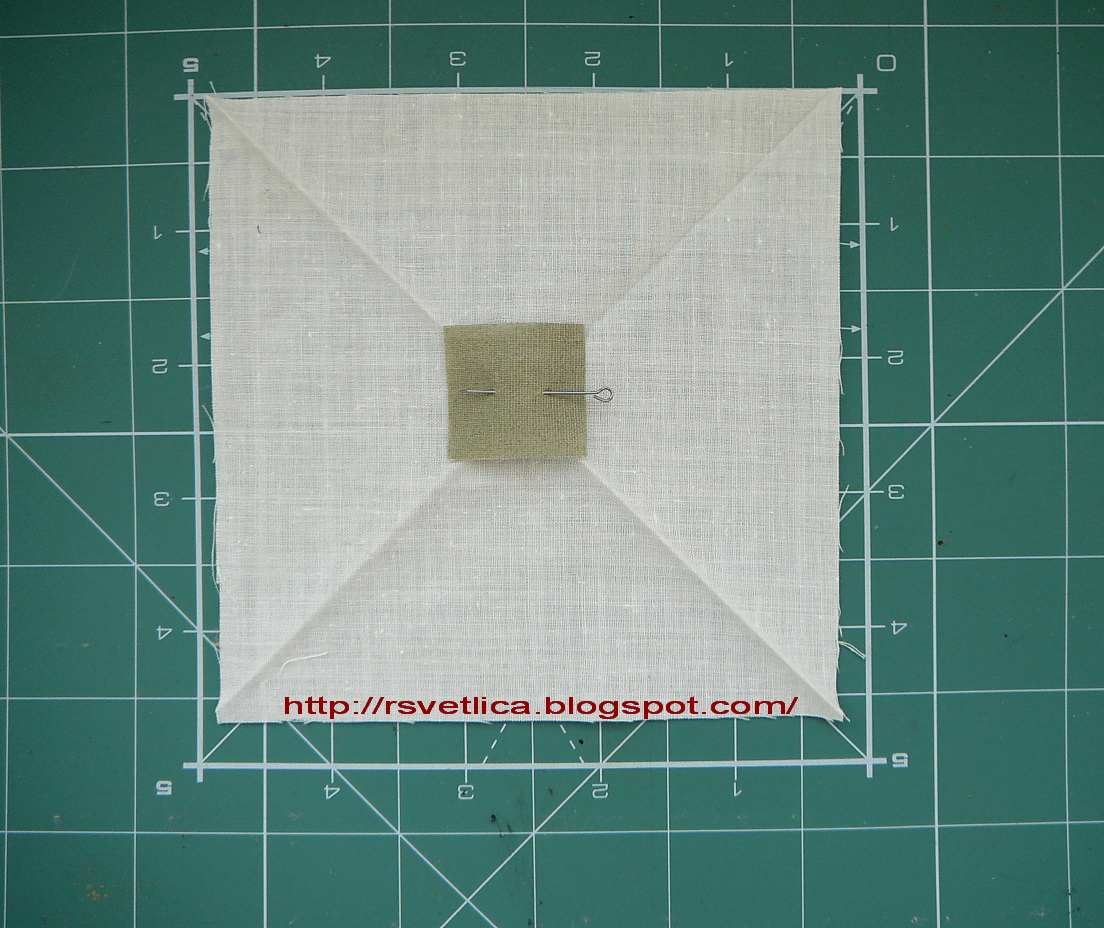 Выкроить серединку очага, близкого по цвету к выбранным тканям, размером 2,5х2,5