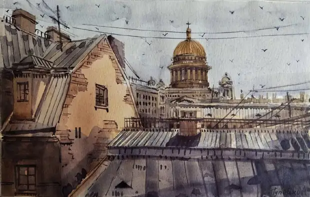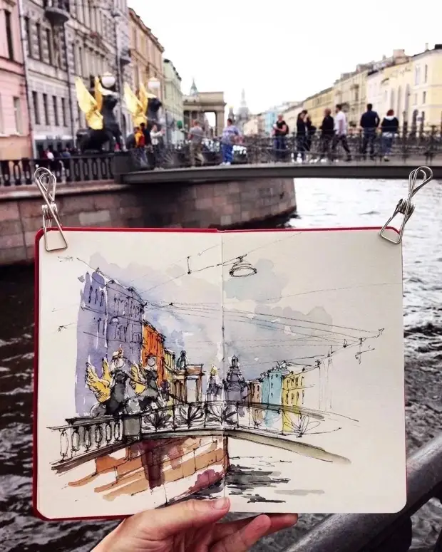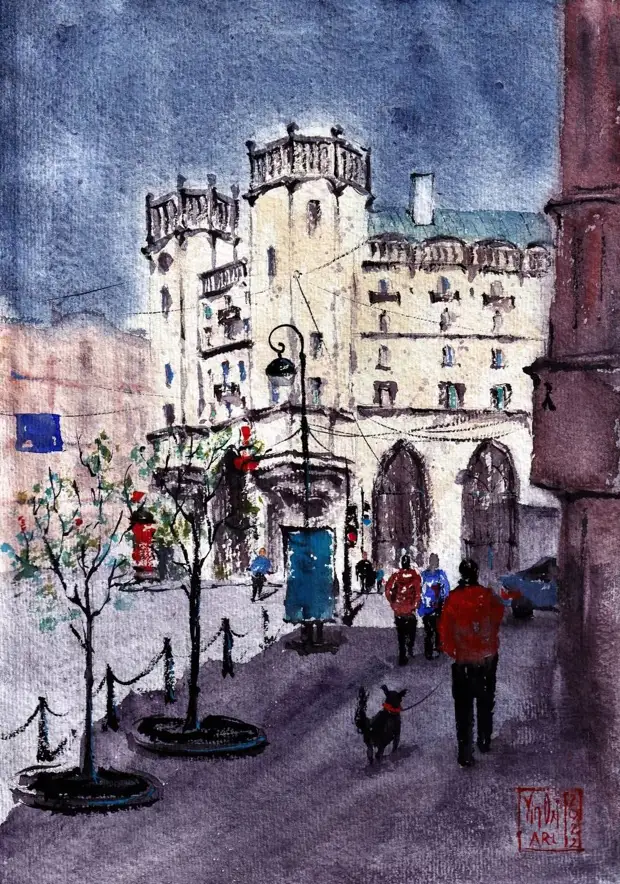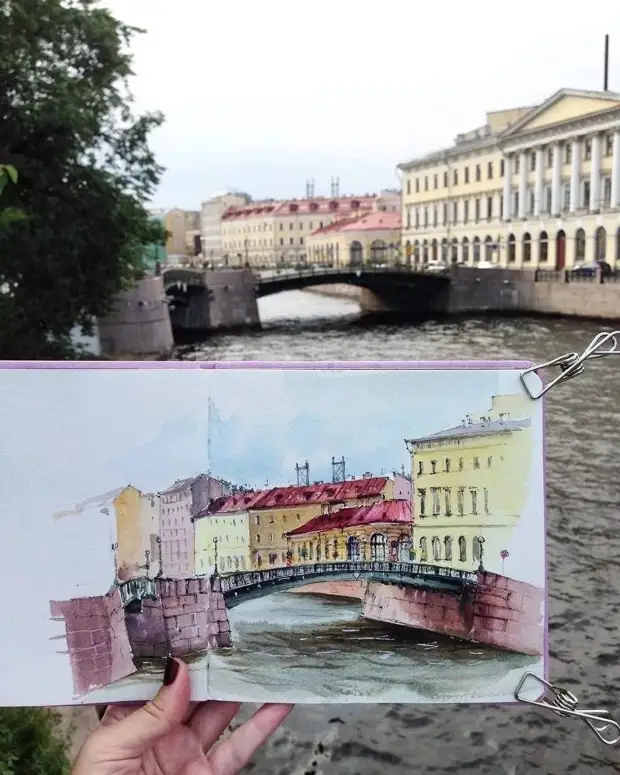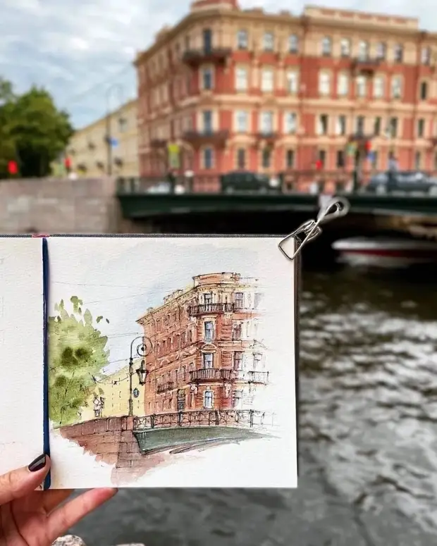 Художница пишет иллюстрации акварелью и цветными карандашами. Насколько точно ей удается передать каждую деталь города.