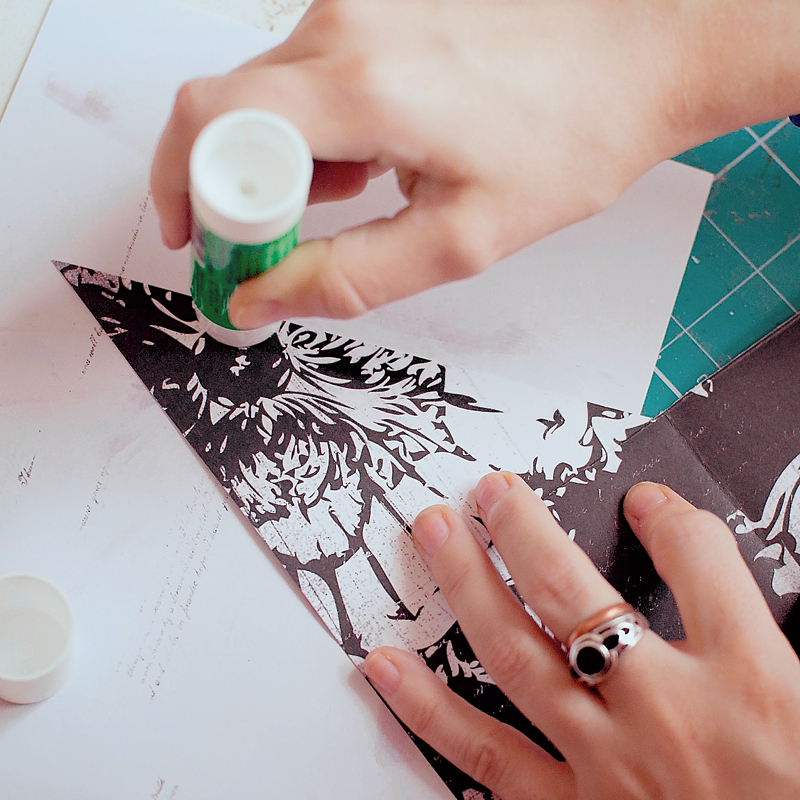 По желанию можно сделать слева двойной карман как на примере, просто сделав фигурный край на остатке бумаге и приклеив его на карман.