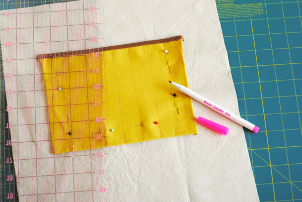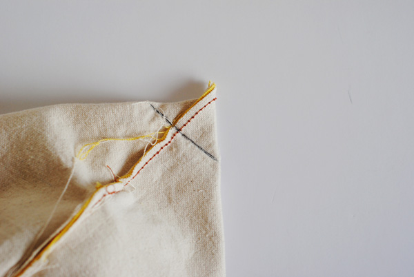Шить на правой стороне задней части подкладки, обратно сшивание в верхней части каждой строки.