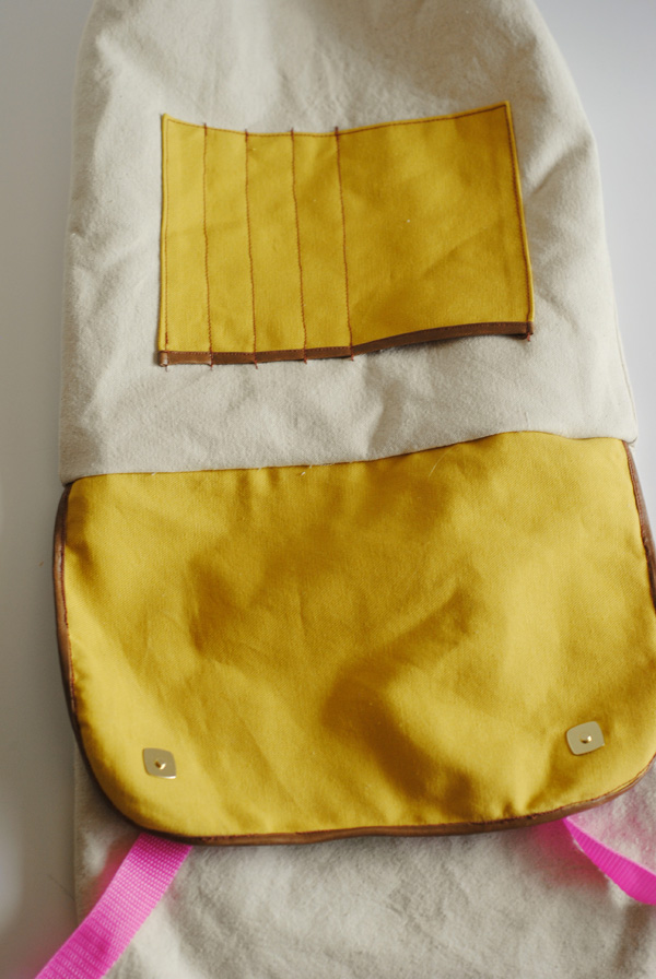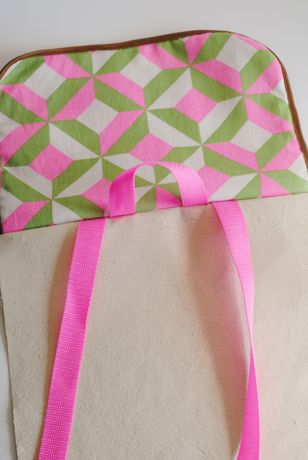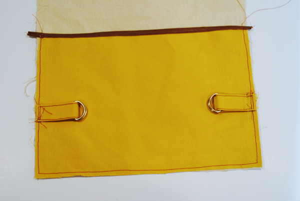 7. Приметайте ручки и ремни, чтобы в верхней части правой стороны внешней кусок обратно.