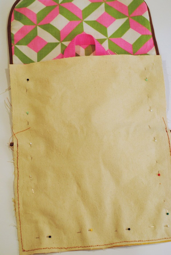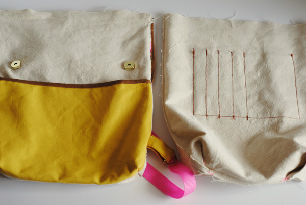 (имеется в виду задней внешний мешок сопоставляются с задней подкладкой сумки),