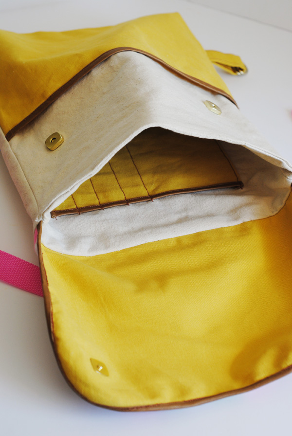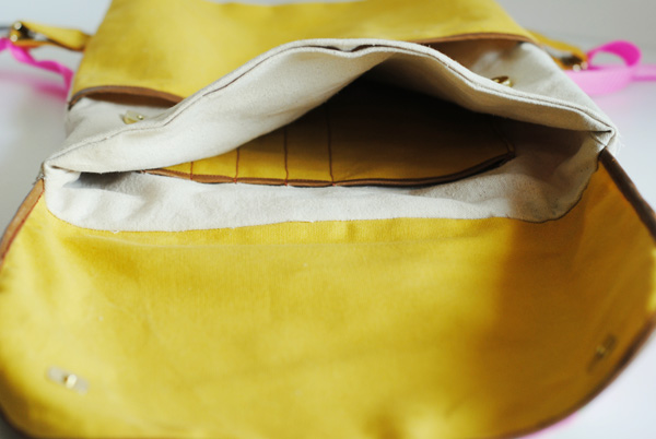 я использовала ткани для основной части моей сумке (овсянки и желтой ткани),