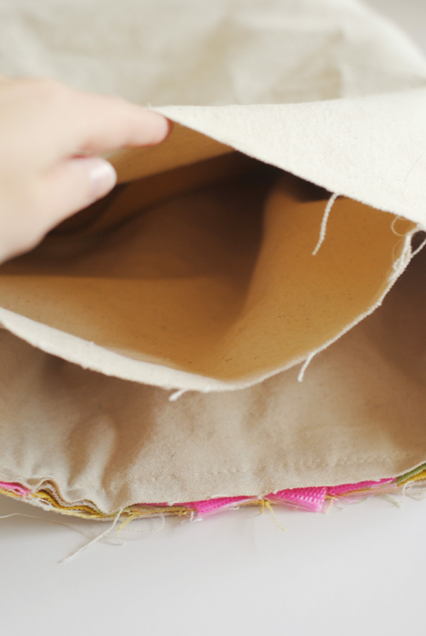 15. Потяните наружный мешок из подкладки сумки через отверстие,