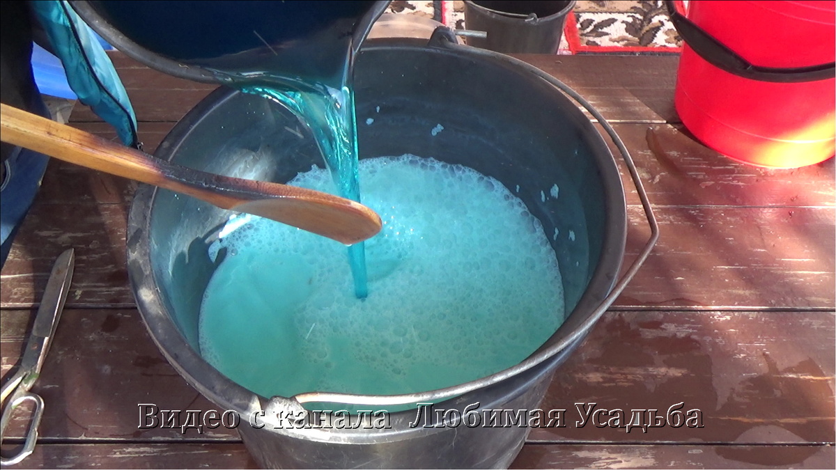 Обязательным условием при смешивании извести и медного купороса является правило добавления раствора медного купороса в раствор извести. И никак не наоборот. Вливают купорос в известь тонкой струйкой, постоянно помешивая соединяемые жидкости.