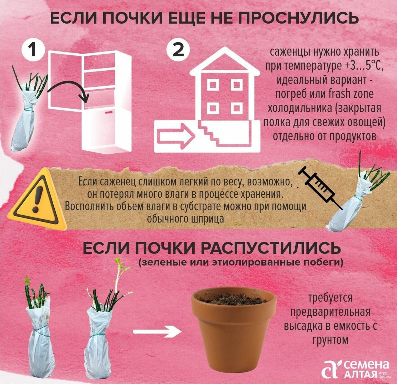 Сделали для вас понятную шпаргалку на 2 случая: если почки еще не проснулись и если уже проросли.