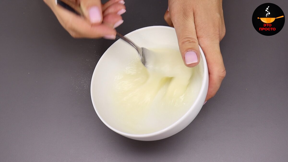 В итоге, у вас должна получиться густая масса, которая, стекая вниз, оставляет на поверхности след.