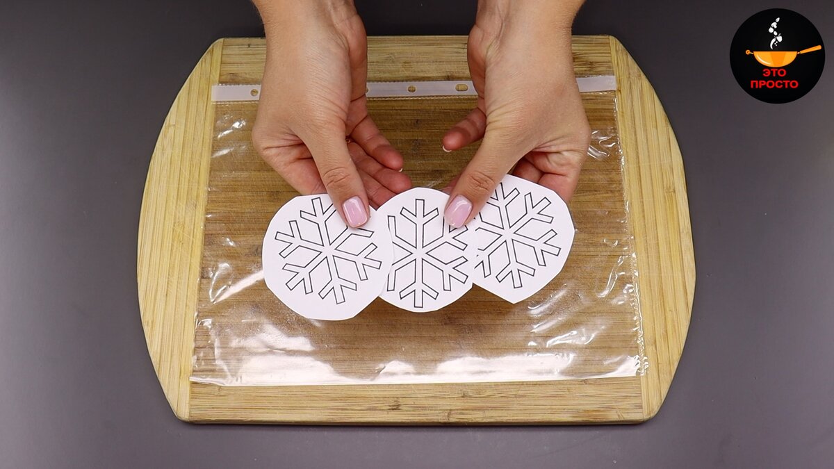 Я оставляю снежинки в таком виде до полного высыхания на ночь, т.е. 10-12 часов. В принципе, их можно трогать уже через час, но я декор всегда делаю заранее, чтобы не было форс-мажора. Посмотрите, как получается красиво!