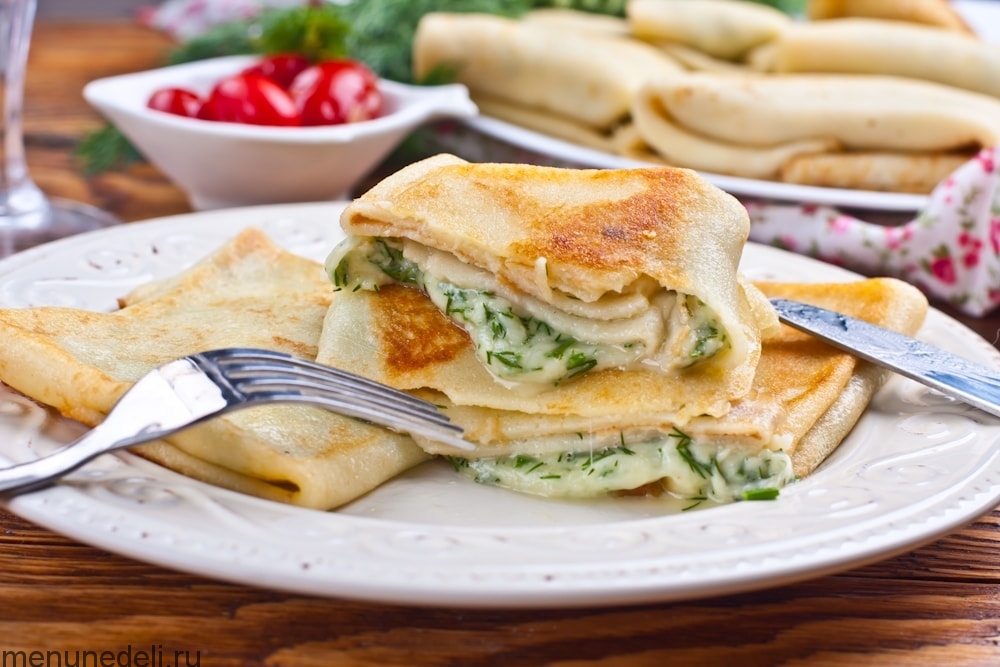 Блинчики с сулугуни и зеленью