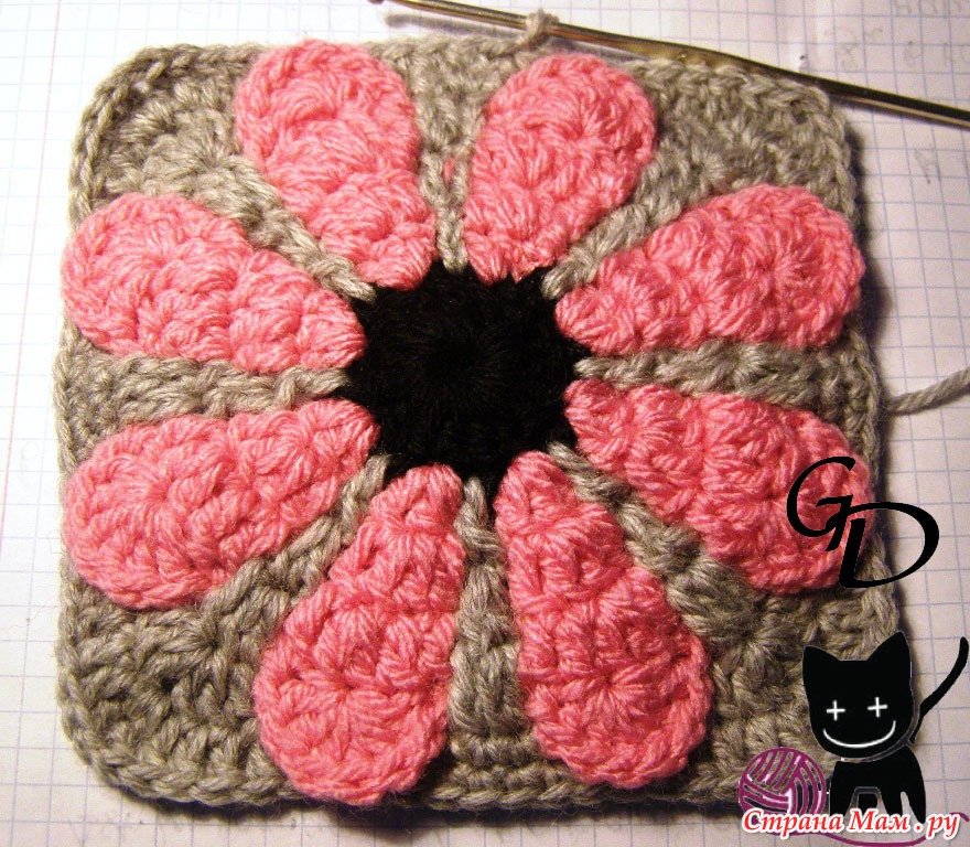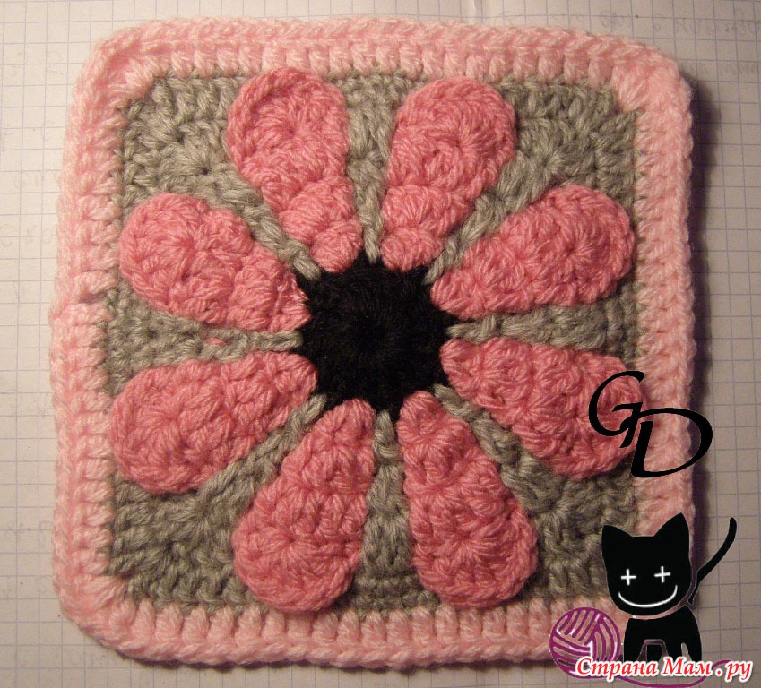 p.s пробный квадрат вязала из полушерстяной пряжи 200м/100г, мотив получился 14*14 cm