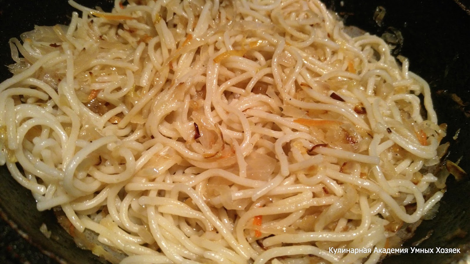 В принципе, можно сначала обжарить лук, потом туда же заложить капусту и тушить их вместе, как любую солянку. Я здесь привела вам исходный вариант приготовления, так как было указано у автора рецепта. Отварите макароны до готовности.