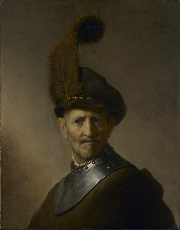Про Рембрандта тоже было известно, что он любил перерисовывать работы — особенно в ранние годы, когда художник писал свои картины не только на холстах, но и на деревянных досках и медных блюдах. С 1960-х историки искусства подозревали, что под «Стариком в военной форме» скрывается другая картина, но подтвердить гипотезу никак не получалось: исследование затруднял тот факт, что Рембрандт использовал для верхней и нижней работ одни и те же краски. В этом случае исследователи использовали комбинацию двух техник — ауторадиографию и макрорентгеновское флюоресцентное сканирование. Первая помогает определить форму рисунка, в данном случае лицо и очертания фигуры, а вторая — распределение химических элементов, соответствующих определенным цветам. Так удалось узнать, что на нижней картине нарисован молодой человек с ракурсом в три четверти и в объемном плаще.