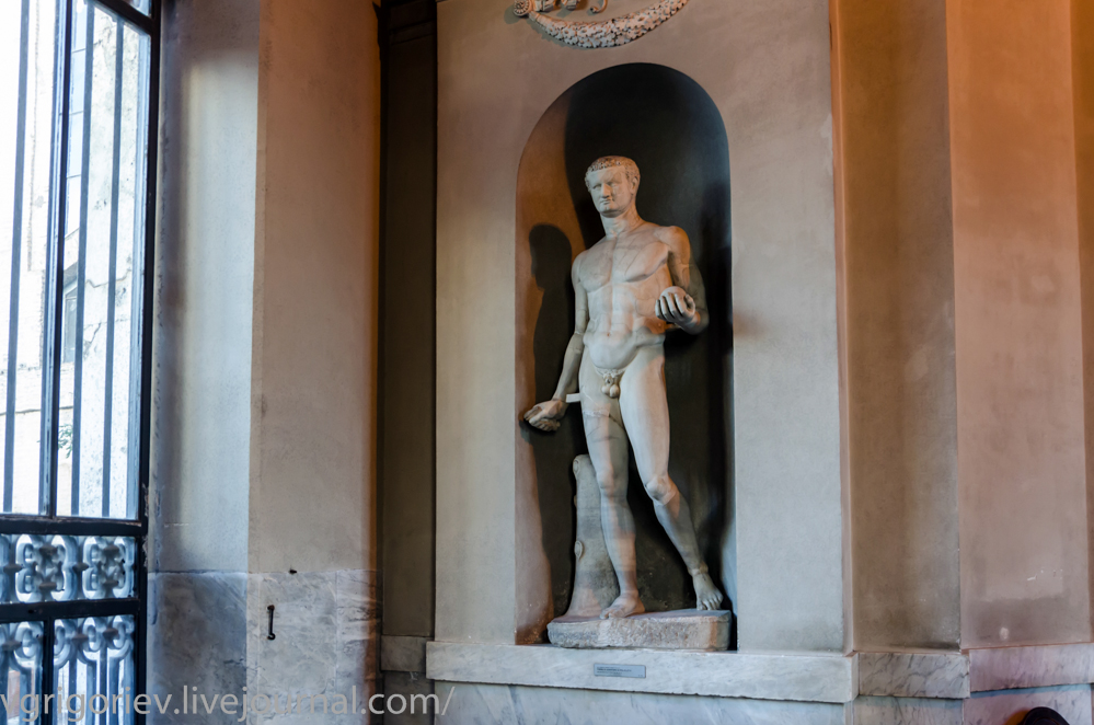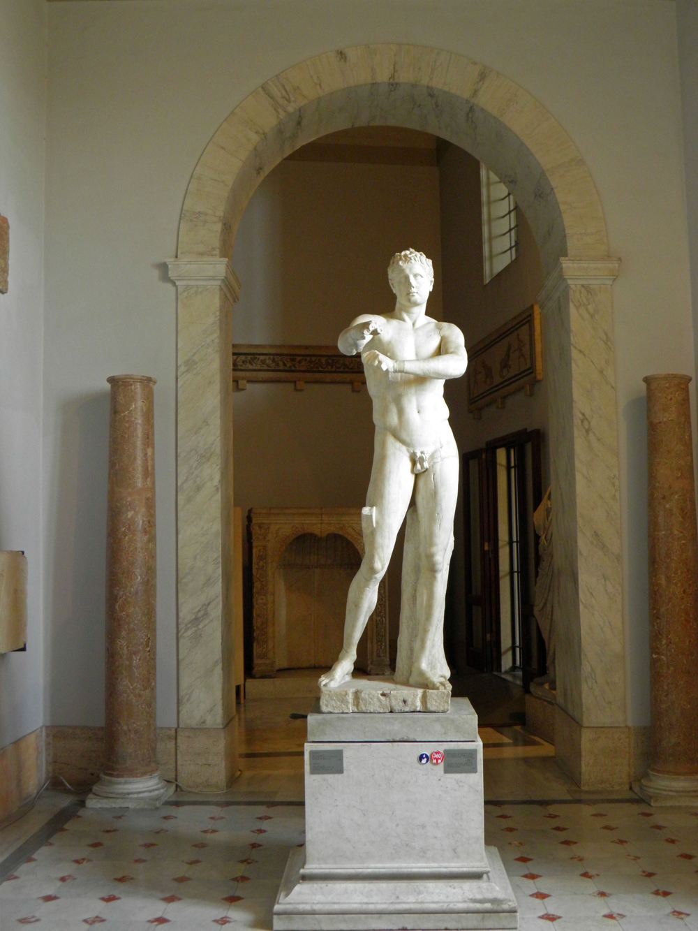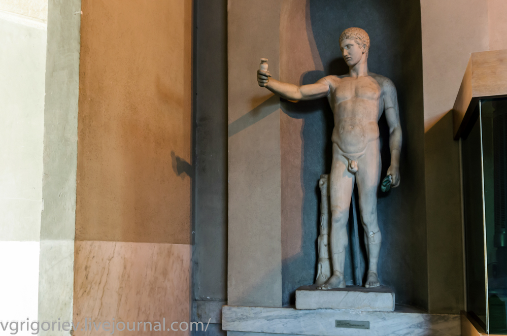 В центре кабинета Апоксиомена стоит превосходная римская копия статуи атлета