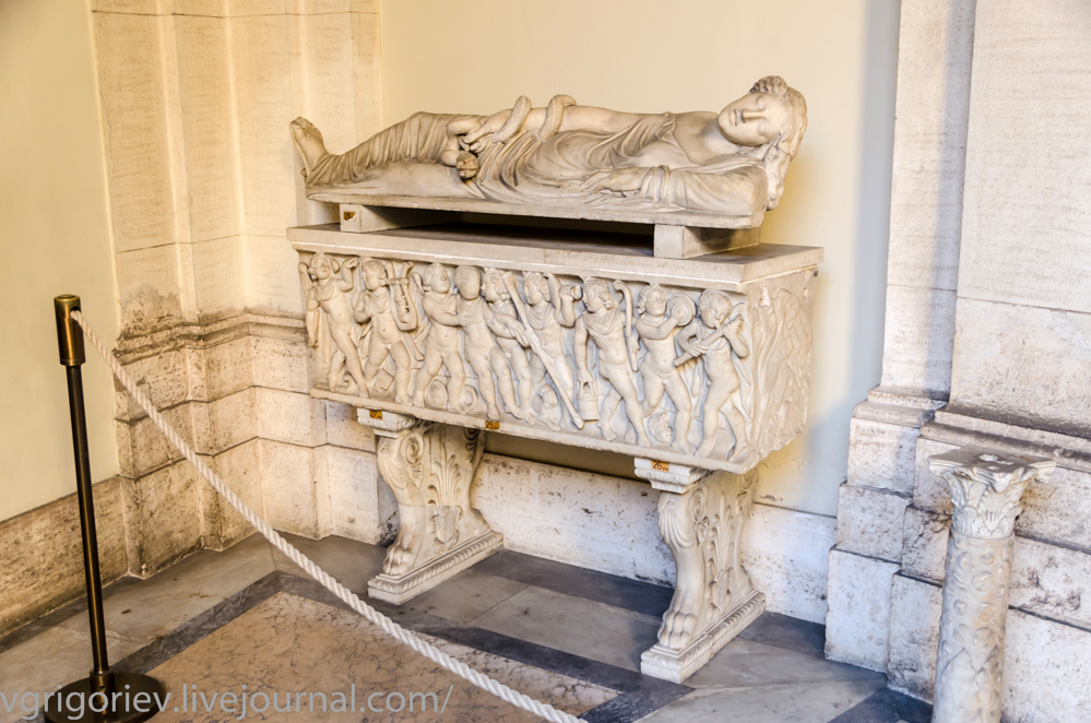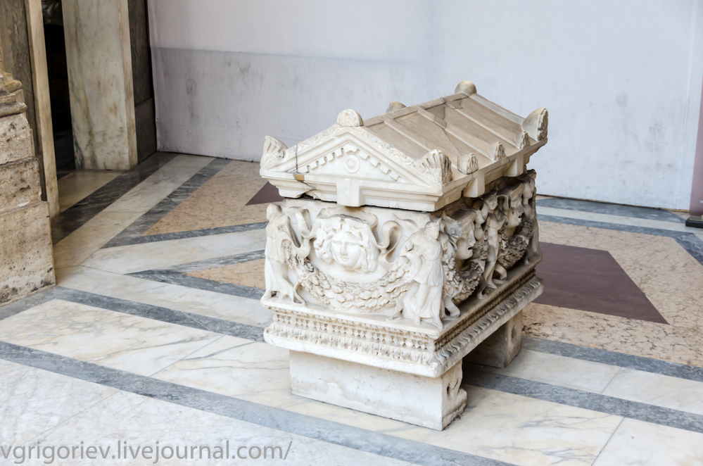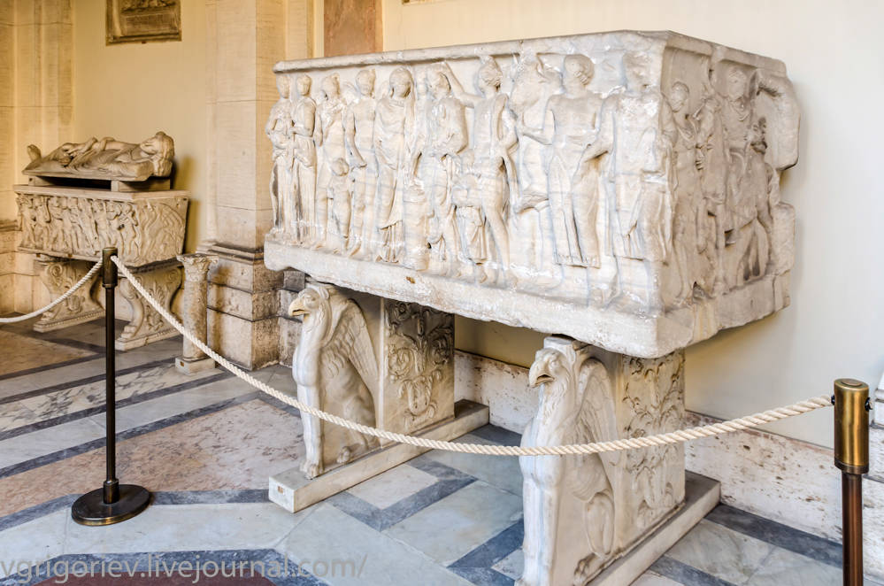В восьмиугольном дворике хранится обширная коллекция саркофагов времен древних римлян, в свое время дававших работу множеству специализированных мастерских, постоянно совершенствовавшихся в искусстве барельефа и создавших подчас настоящие шедевры. Резные усыпальницы свидетельствуют о завидном финансовом положении заказчиков.