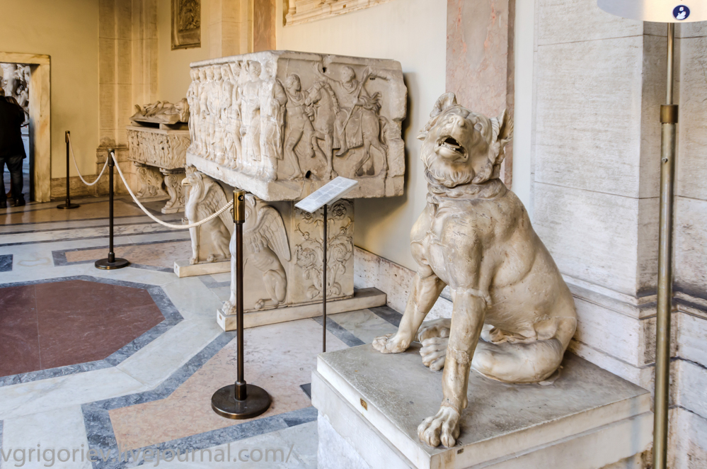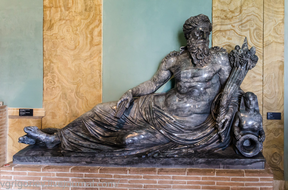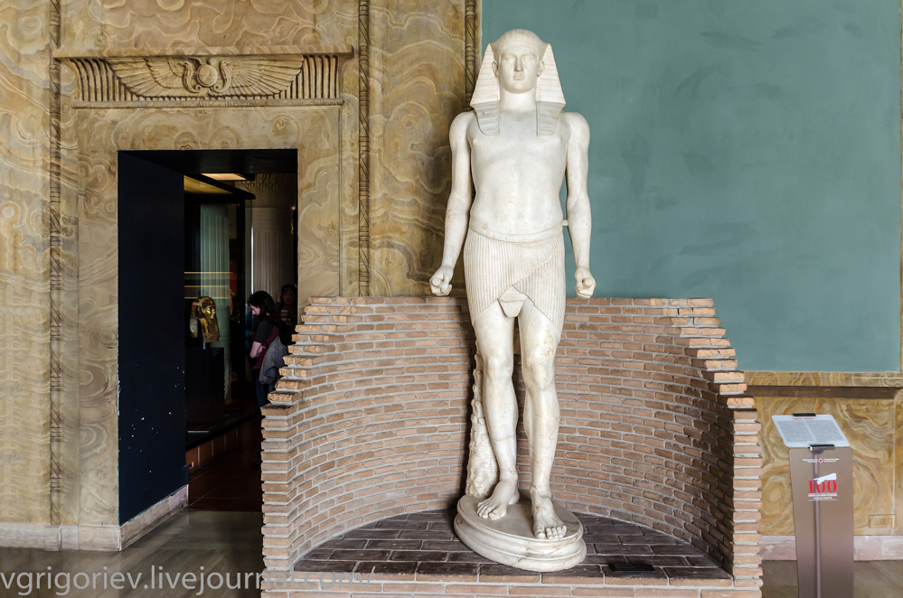 Поднявшись, надо сориентироваться и решить для себя, куда двигаться дальше. Можно посетить Египетский музей, а можно сразу идти в музей Пио-Клементина. Поможет вам в размышлениях план посещения музеев, прилагаемый к электронным билетам. На распутье можно увидеть несколько скульптур.