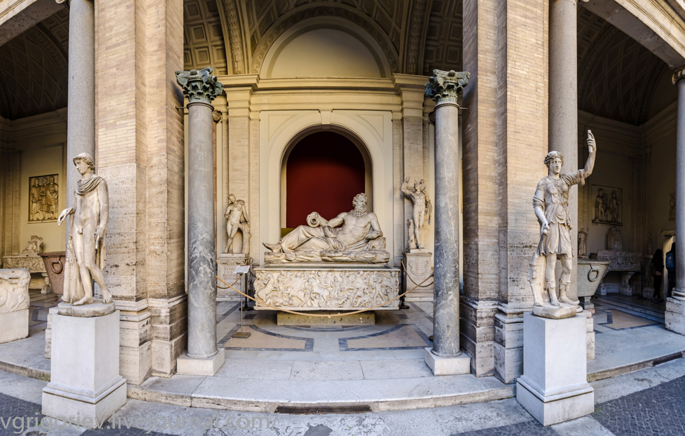 Браманте в сад статуй. В XVIII в. папа Климент XIV повелел обнести открытую площадку восьмиугольным портиком, придав ему таким образом вид, сохранившийся до наших дней.