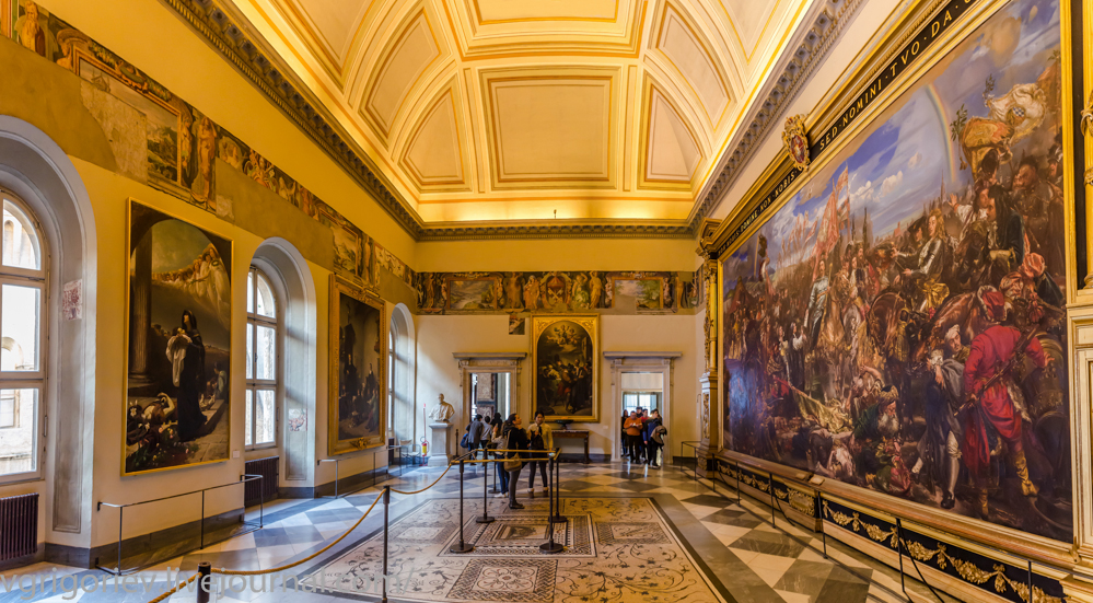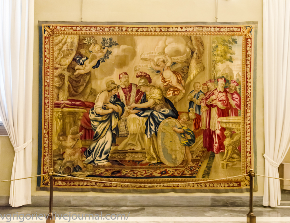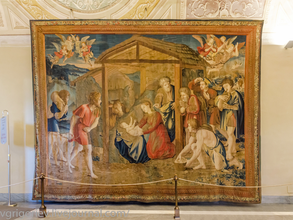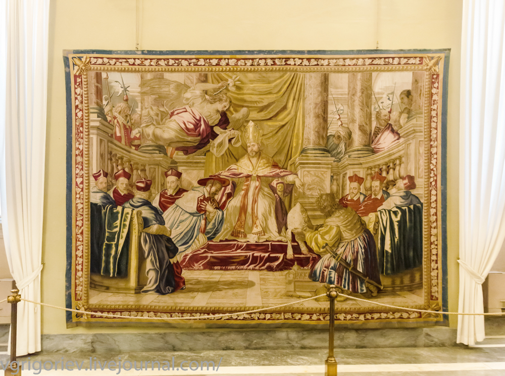 Пия V (1566-1572) и украшен фресками Джорджио Вазари и Федерико Зуккари. В нем представлены фламандские гобелены XV и XVI веков. Первая из двух небольших комнат, рядом с галереей, содержит богатую средневековую и ренессансную коллекцию керамики. В другой комнате есть наводящая на размышления коллекция минутных мозаик, выполненных в Риме между концом XVIII и первой половиной XIX столетия.