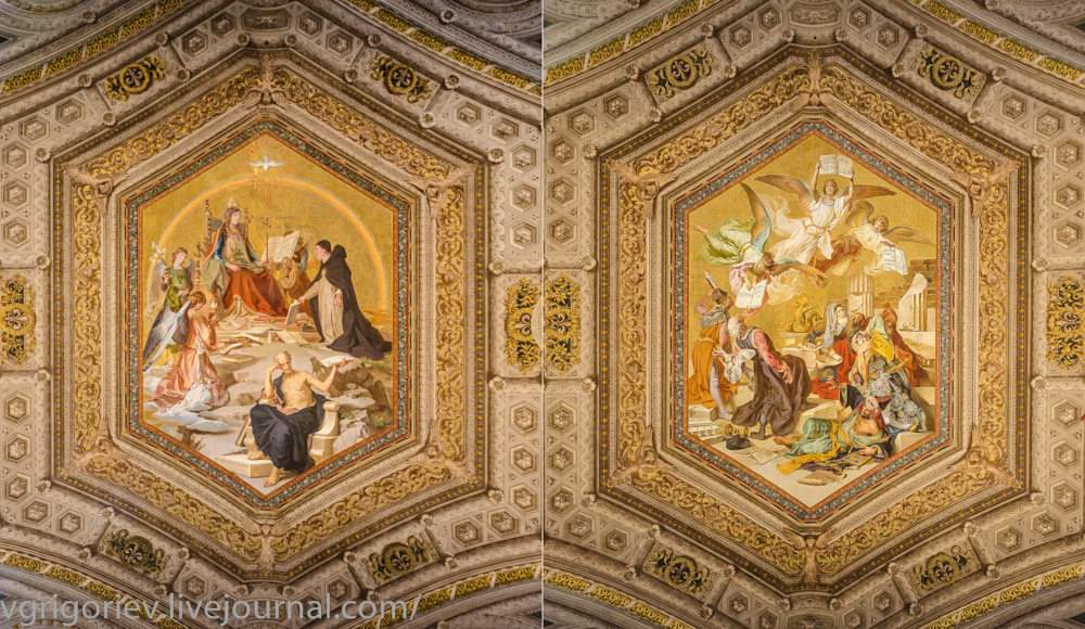 29. Аллегорическая фреска, изображающая необходимость объединения веры с разумом, и гризайль преподобного Фомы Аквинского.