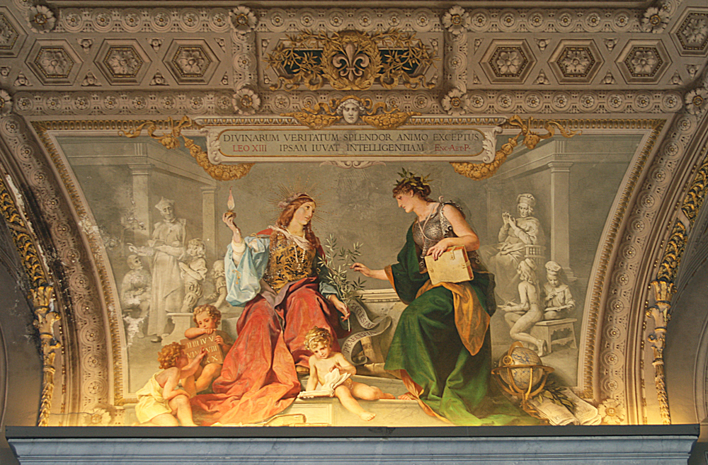 Львом XIII, чтобы увековечить ряд важных событий своего Понтификата. Об этом напоминает роспись потолка в одной секции галереи и потолочная фреска сразу у входа.