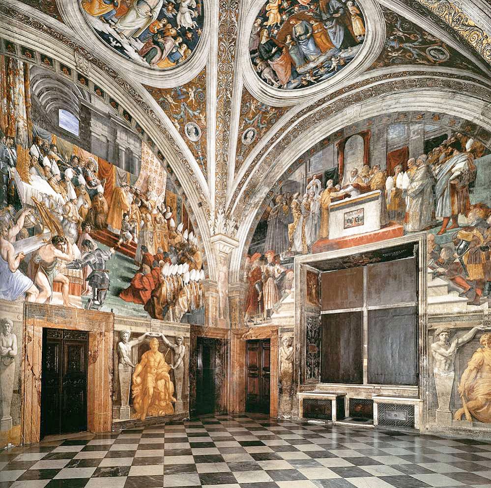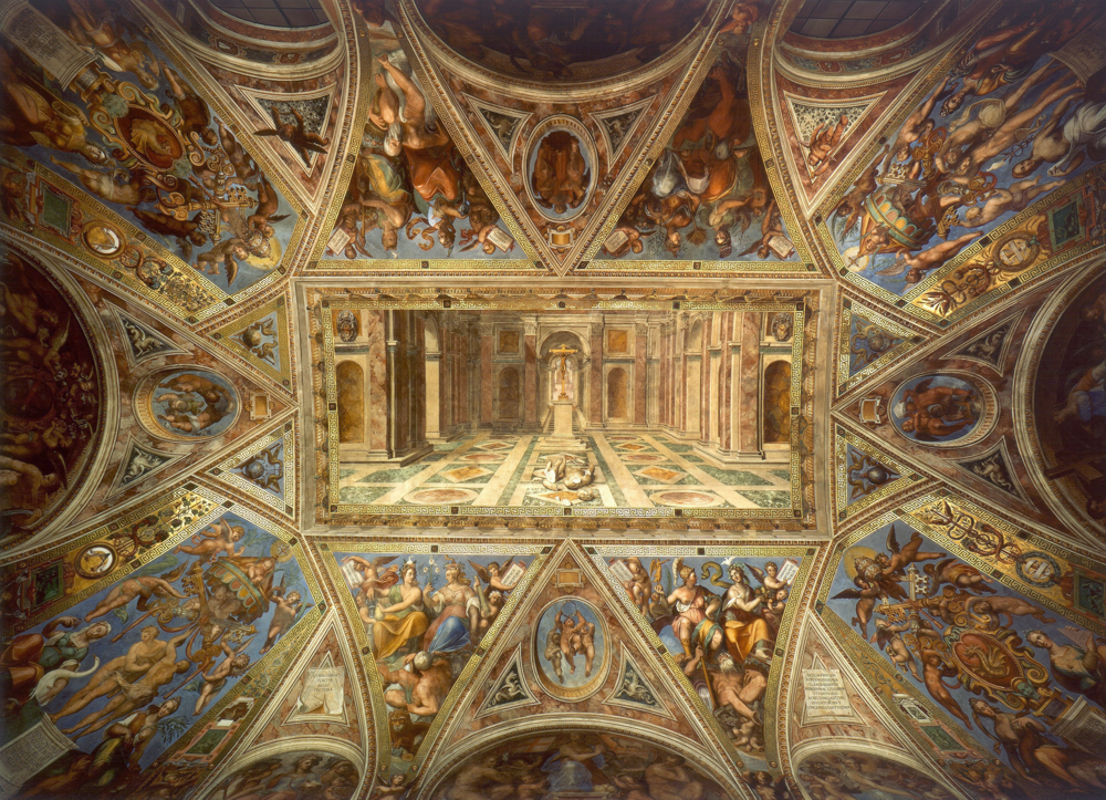Наиболее известен комплекс фресок в папском рабочем кабинете - Станца делла Сеньятура. Кабинет расписан Рафаэлем в 1509-1511 гг. Тема росписи - духовная деятельность человека. Фрески представляют четыре её области: "Афинская школа" - философию, "Диспута" - богословие, "Парнас" - поэзию и музыку, "Добродетели и закон" - главные гуманистические и христианские добродетели.