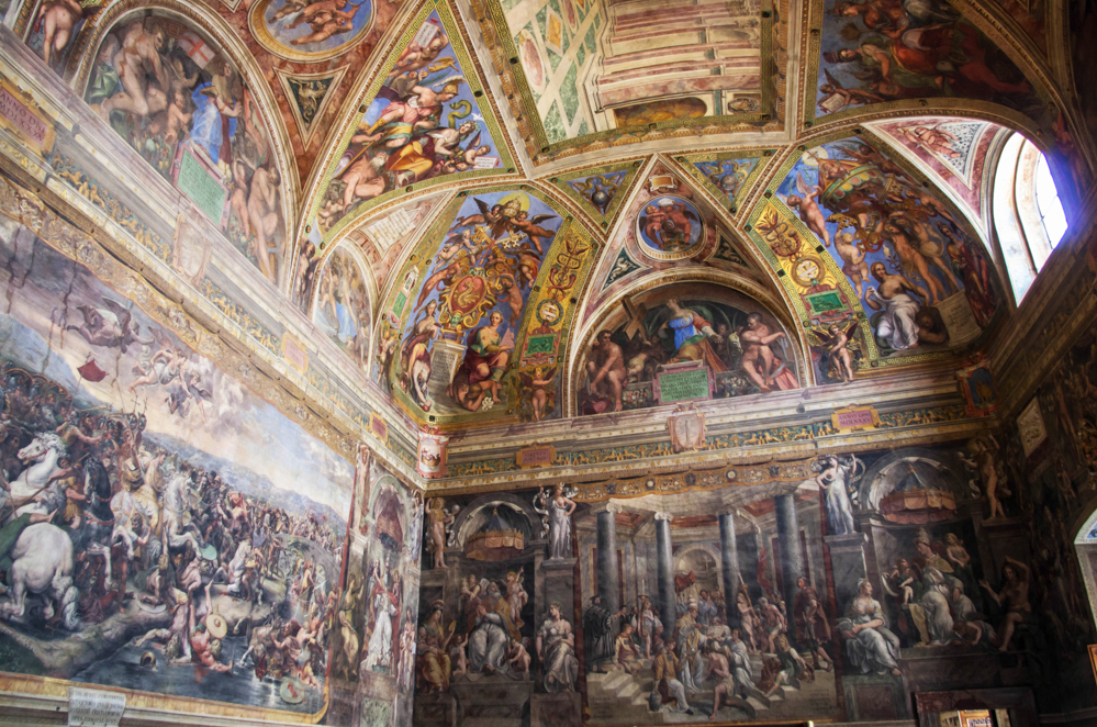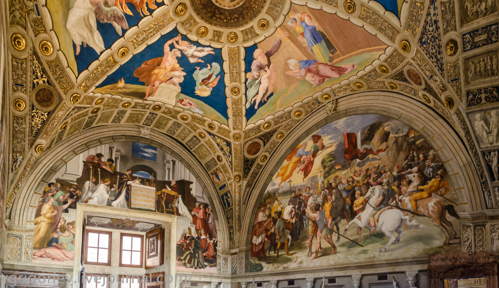 Станцы Рафаэля - это четыре сравнительно небольших помещения (примерно 9×6 м), расписанные в 1508-1517 годах Рафаэлем вместе с учениками, и зал, росписи которого были выполнены учениками по эскизам живописца после его смерти. Каждую из стен целиком занимает фресковая композиция, таким образом в каждой из станц их по четыре. Росписи отличают глубина замысла, образная насыщенность и композиционная ясность. Оказавшись здесь, не забудьте внимательно рассмотреть потолки.