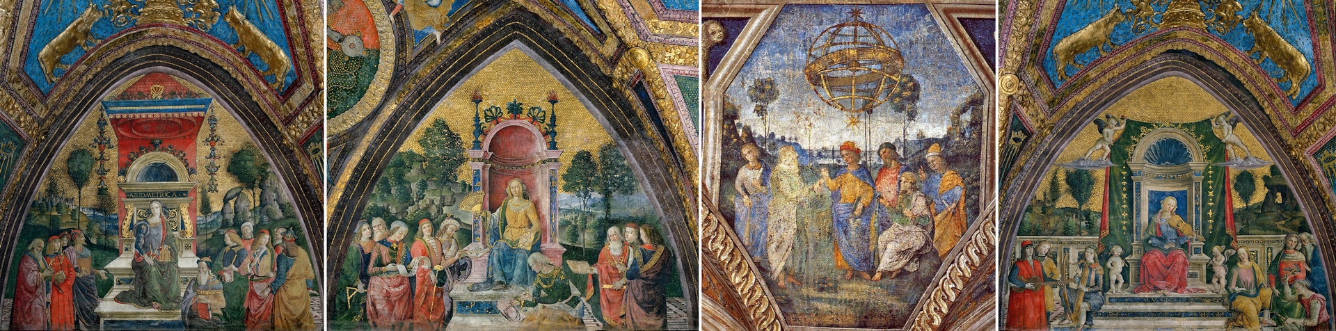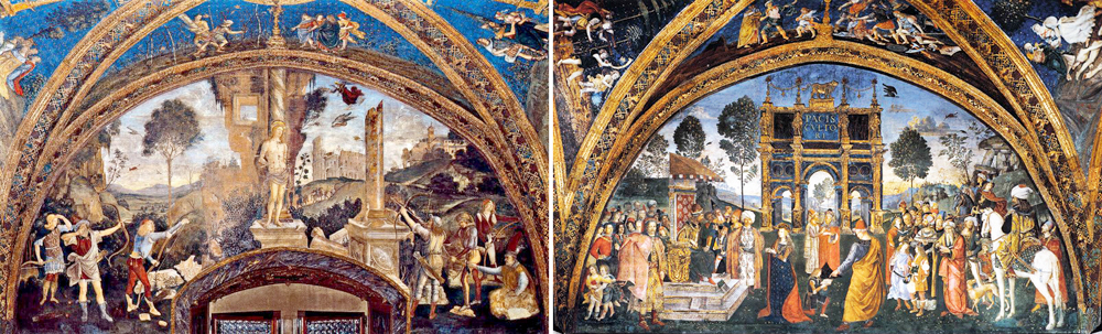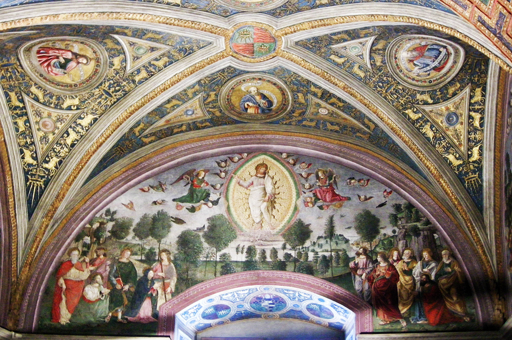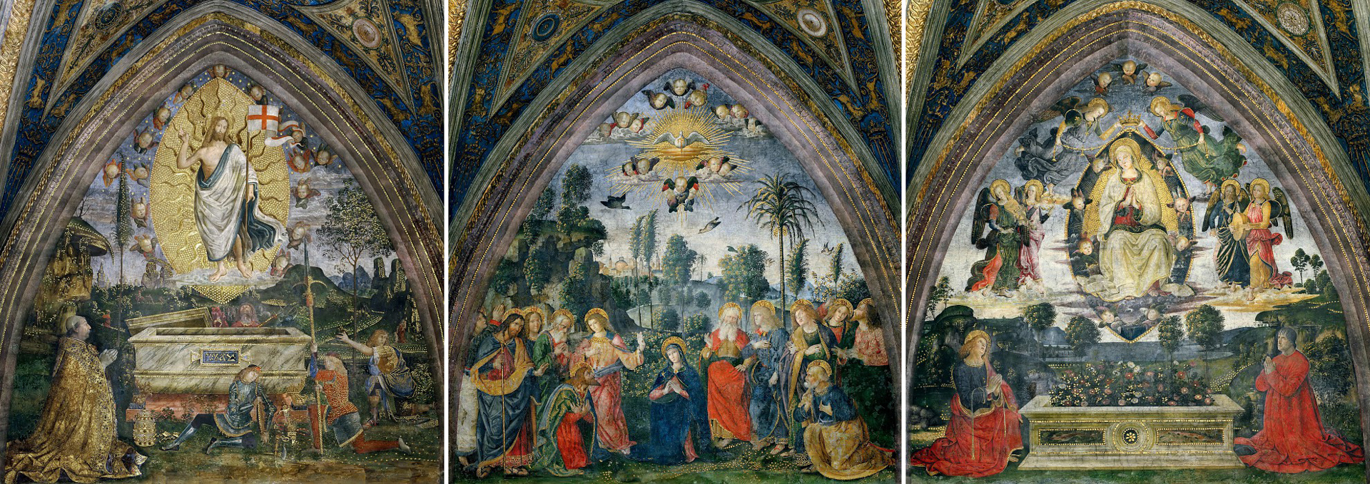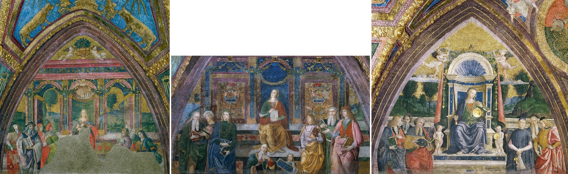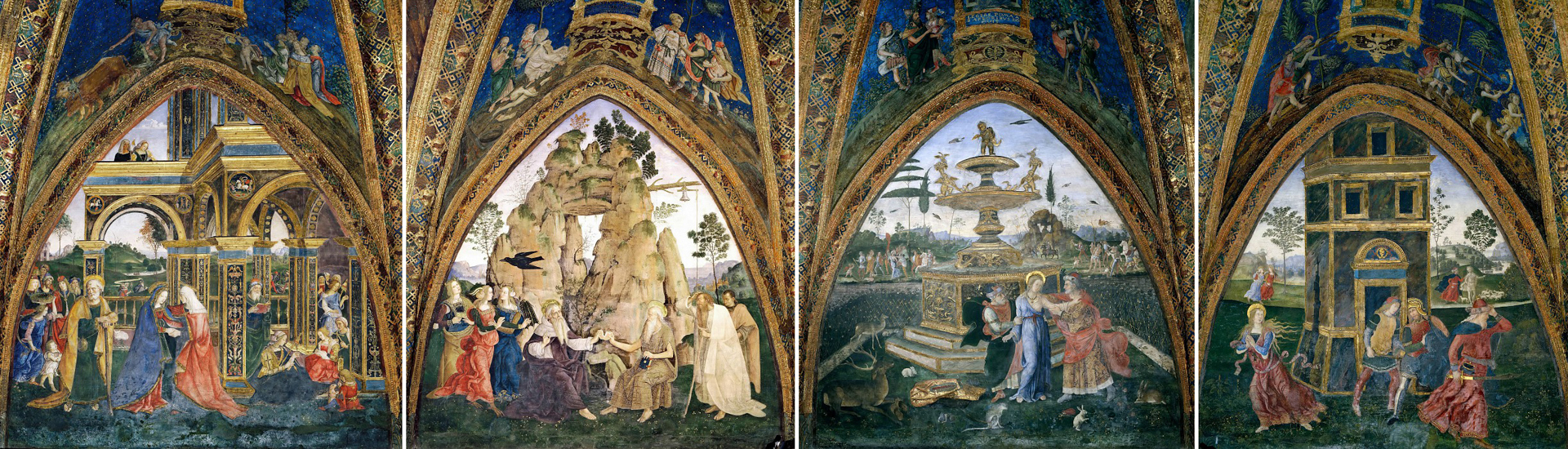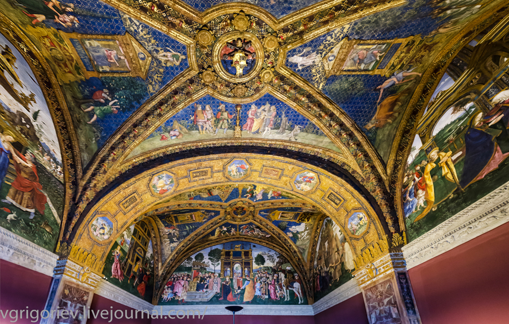 Зал святых (Sala dei Santi) почти целиком расписан самим Пинтуриккьо. Сюжеты росписей - сцены из жизни святых.