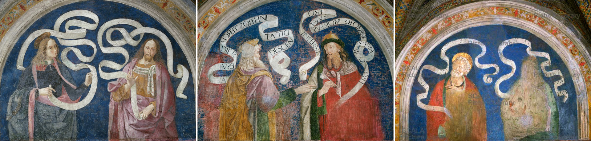 Образное оформление ограничивается двенадцатью люнетами, которые показывают пары апостолов и пророков.