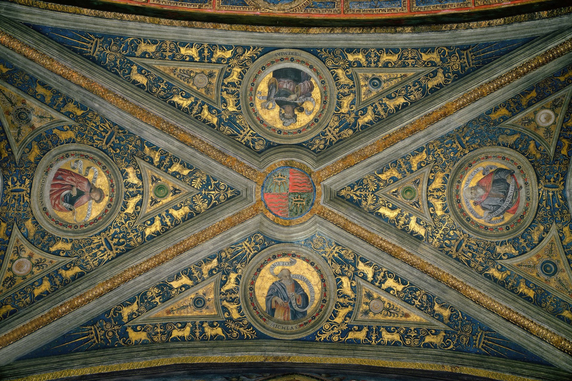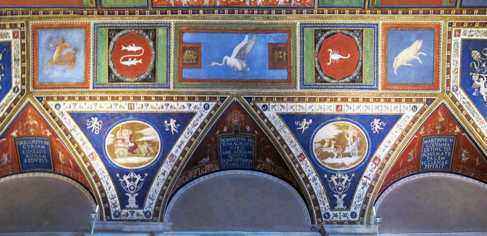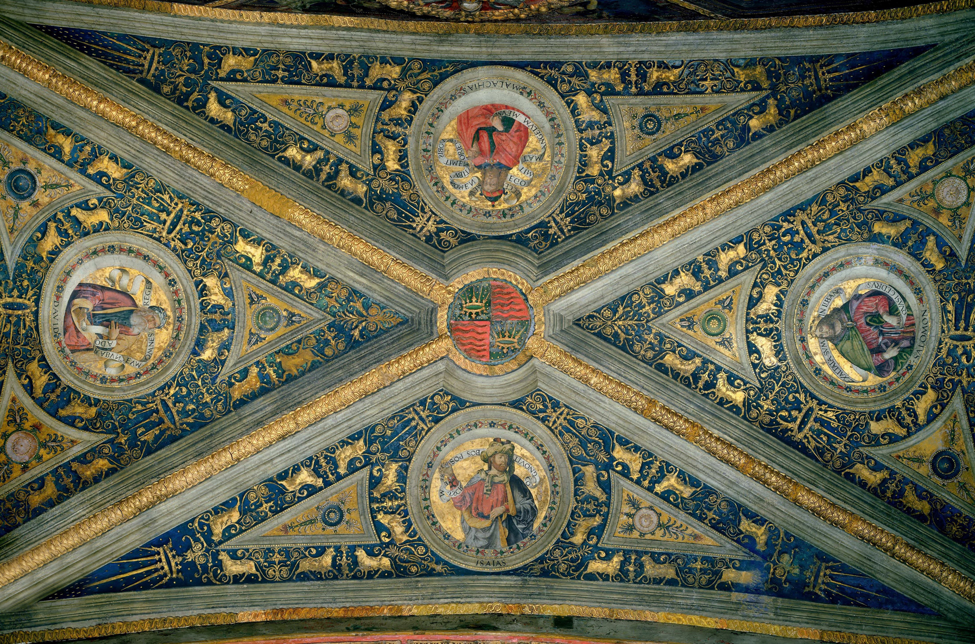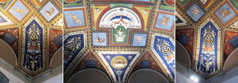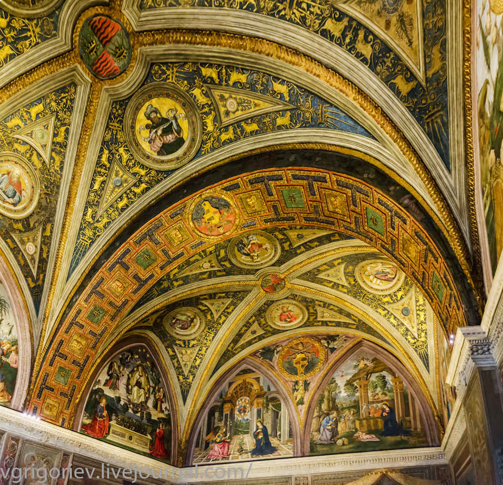 конкордансе между Ветхим и Новым Заветом. Потолок украшен сложными геометрическими узорами, в которых встречаются папский герб и цвета Борджиа.