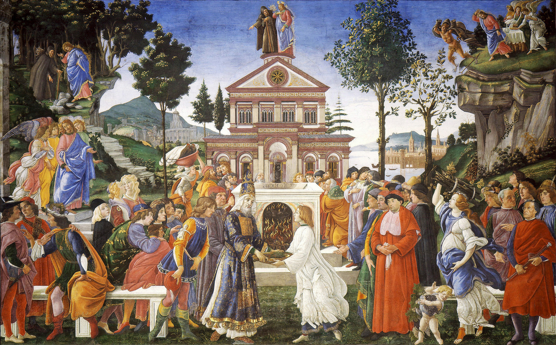 После сближения папы и Лоренцо Медичи (спустя два года после заговора Пацци) группа флорентийских художников была приглашена в Рим, где вместе с умбрийскими мастерами в 1481-1483 годах украсили стены Сикстинской капеллы. Это были