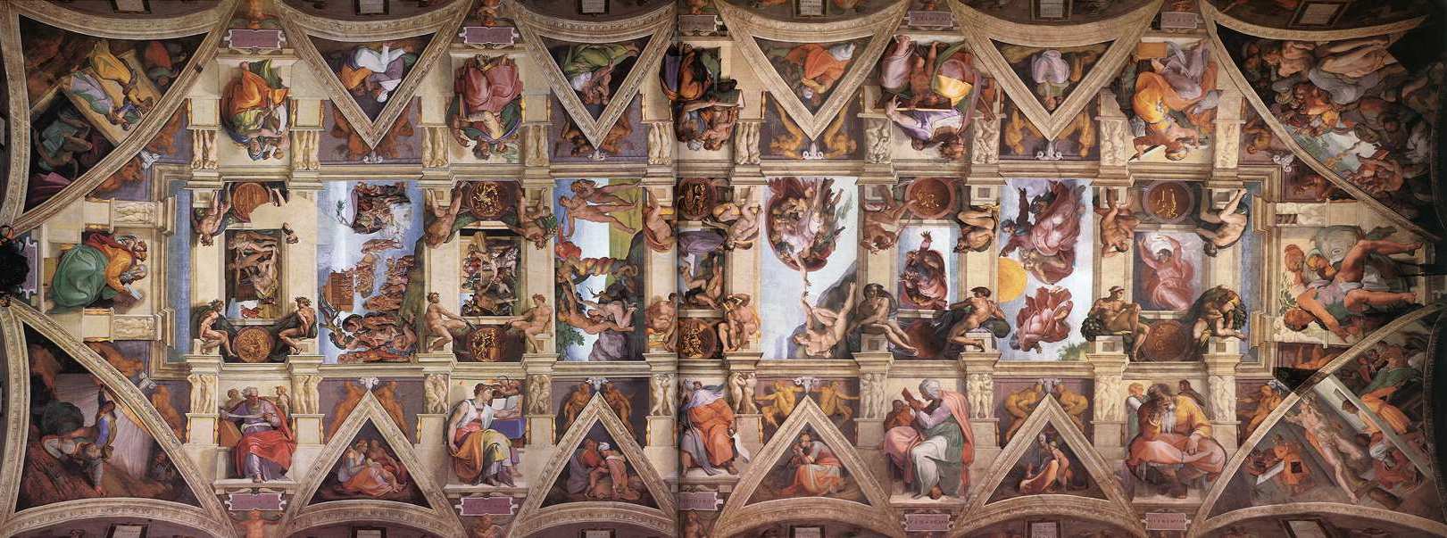 потолка Сикстинской капеллы представляет собой известнейший цикл фресок Микеланджело, созданный в 1508-1512 годах и считающийся одним из признанных шедевров искусства Высокого Возрождения. Сложнейшую задачу, поставленную перед ним папой Юлием II - Микеланджело, называвшему себя скульптором, а не живописцем, не приходилось ещё осуществлять столь масштабную работу в технике фрески, - мастер выполнил в рекордные сроки.