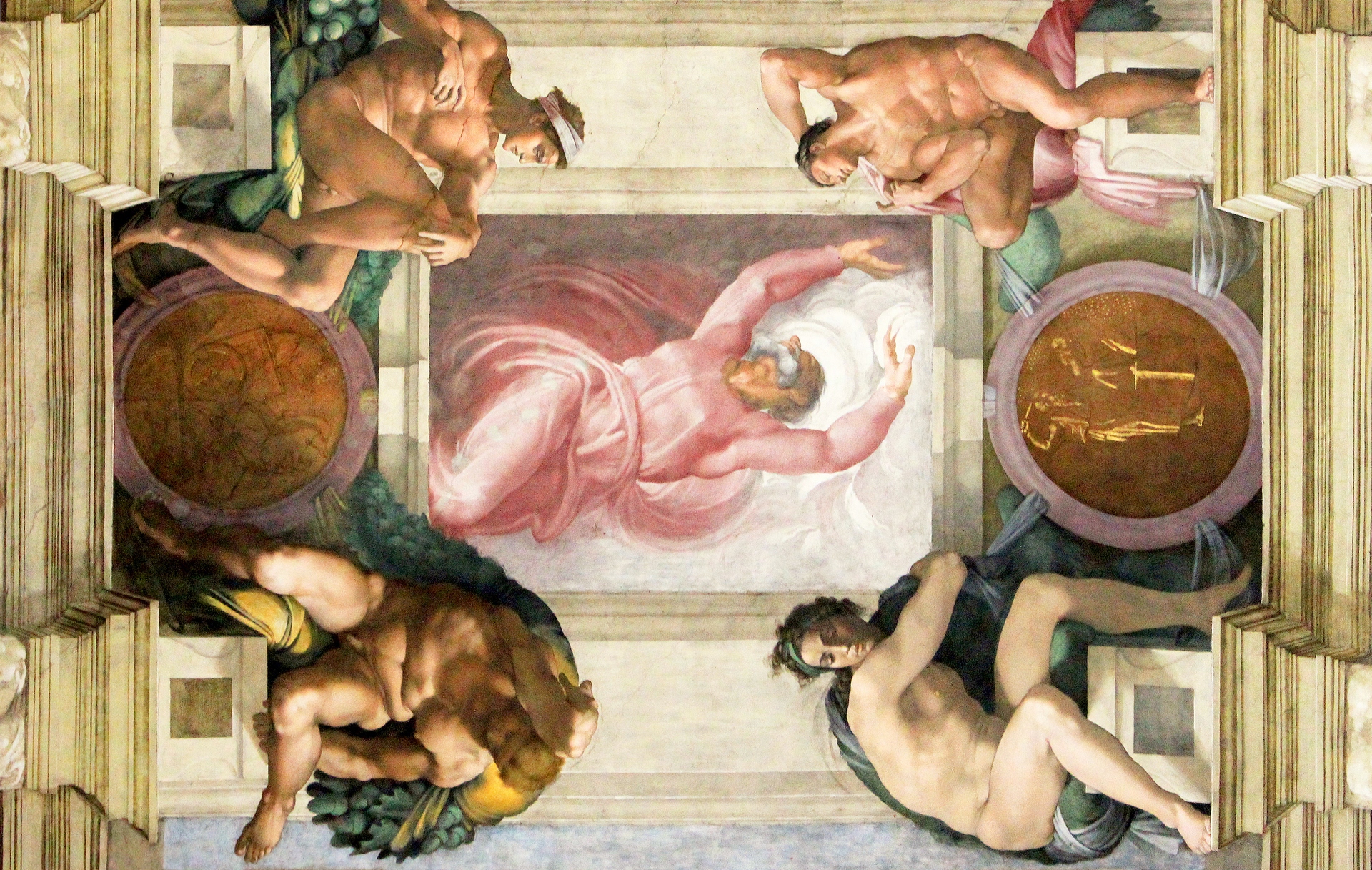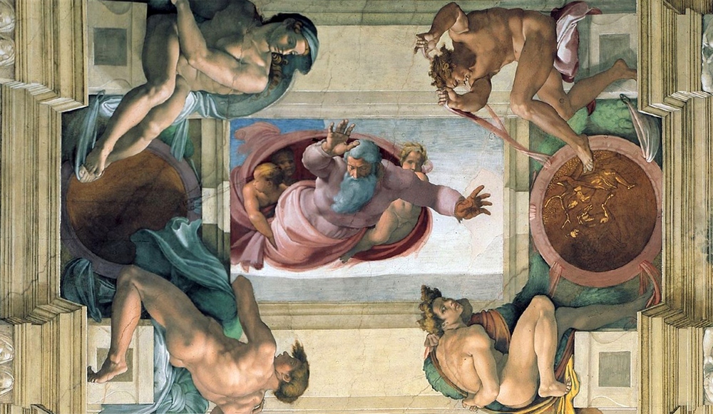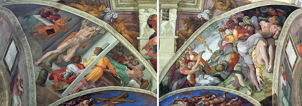 В каждом из четырёх углов капеллы, на изогнутых распалубках свода, Микеланджело изобразил четыре библейские истории, которые связаны со спасением народа Израиля Моисеем, Есфирью, Давидом и Юдифью.