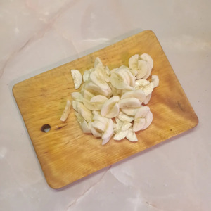 Бaнaны очистить и нарезать ножом на небольшие кусочки.