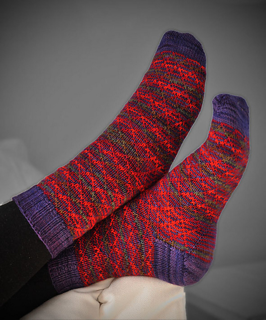 С первым носком я довольно долго провозилась, три раза перевязывала пятку. Второй связала быстро. Хорошо избавляться от остатков ниток и вязать такого типа носочки! )
