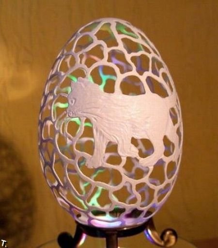 Есть среди этих скорлупковых шедевров и изображения птиц, животных