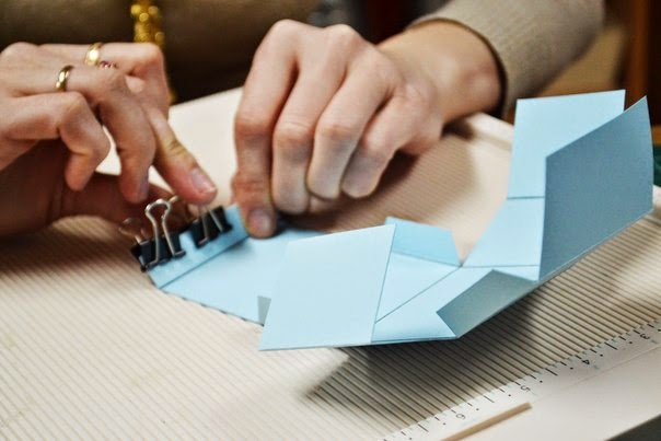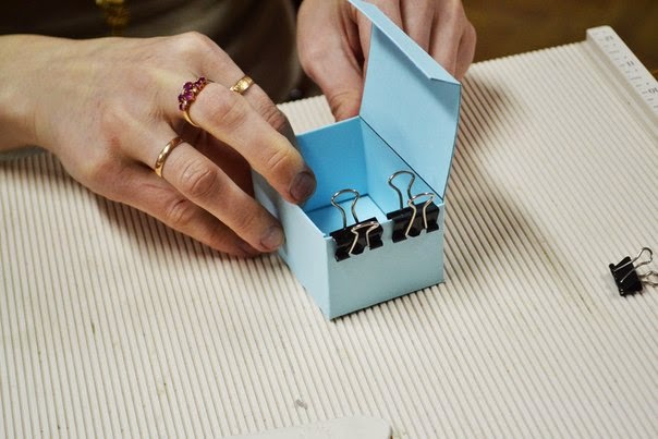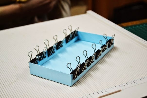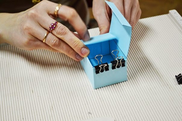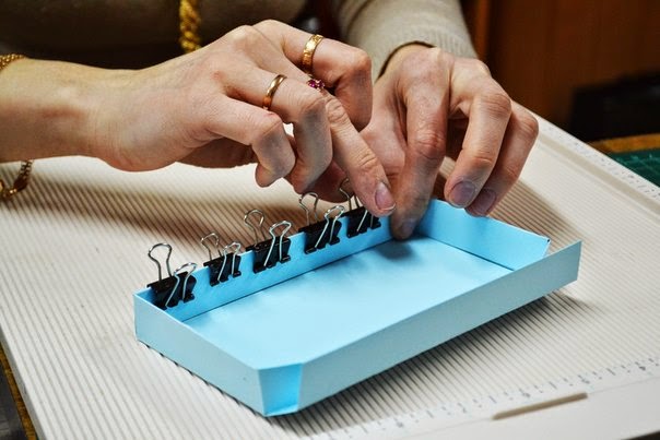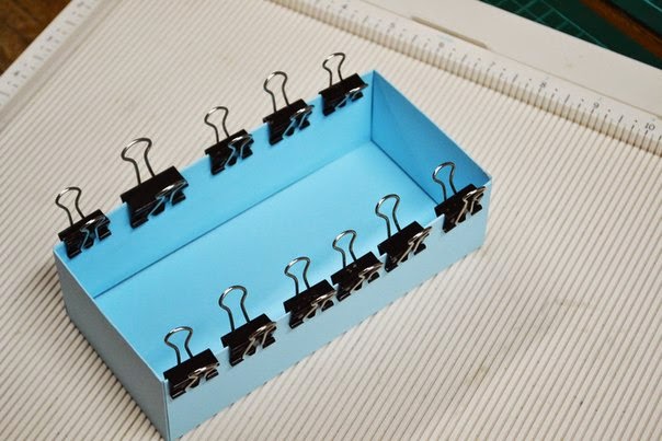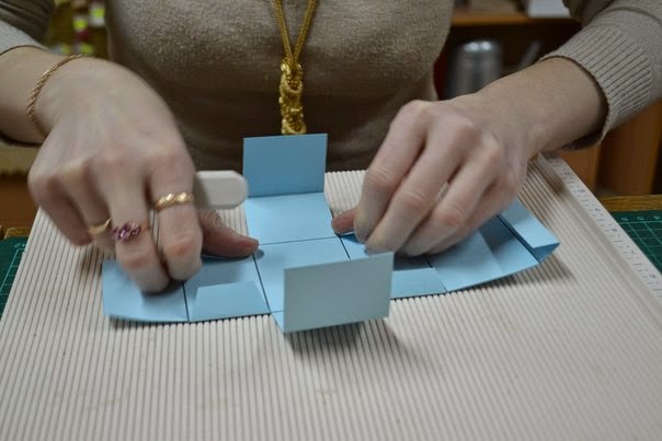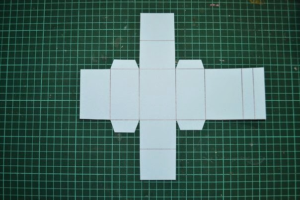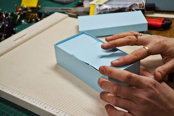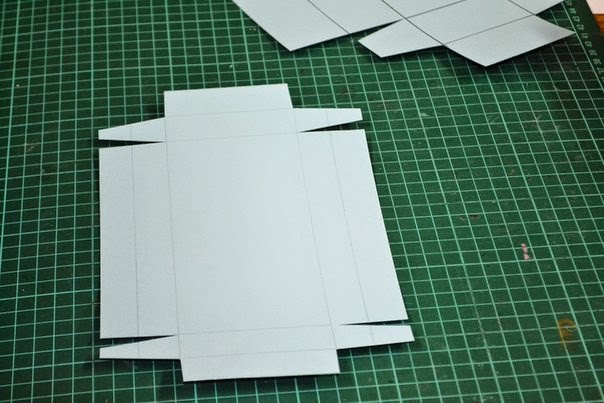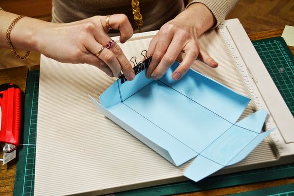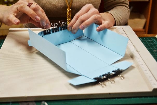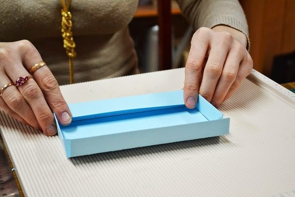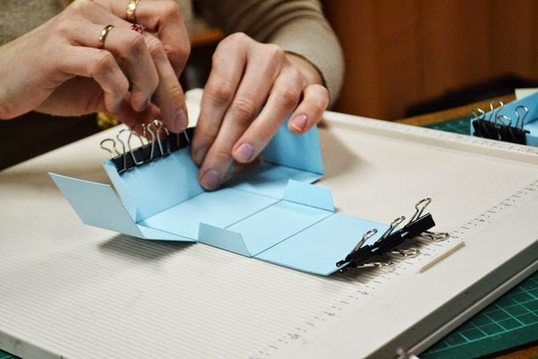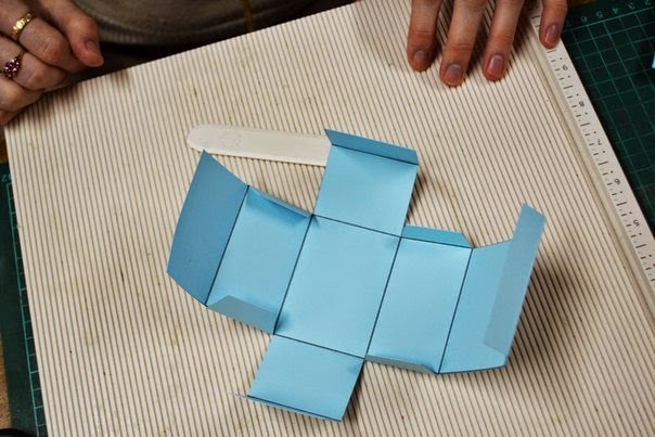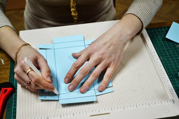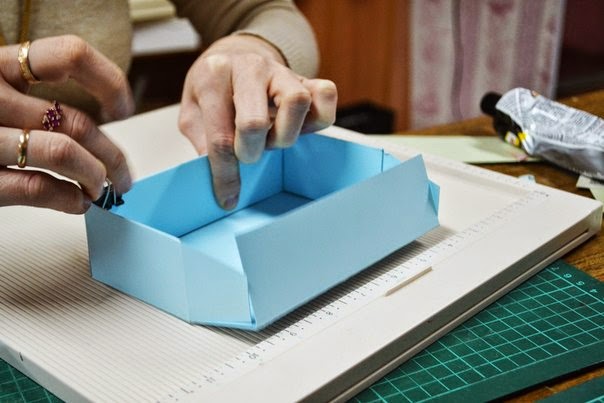 после того как все пробиговали, загибаем все так чтобы собрать коробочку, пока без клея, и подрезаем края, по необходимости, так чтобы коробочка была ровной