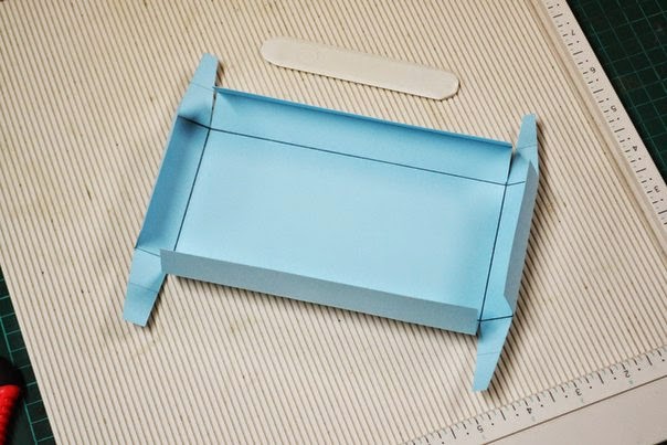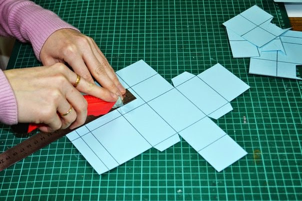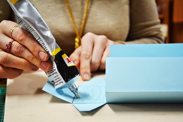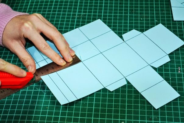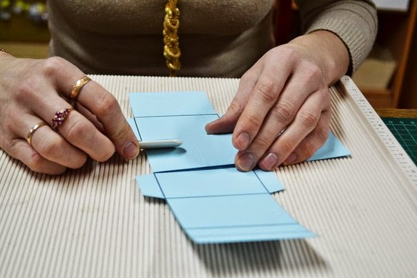 начинаем вырезать "уши", для того чтобы склеить коробок