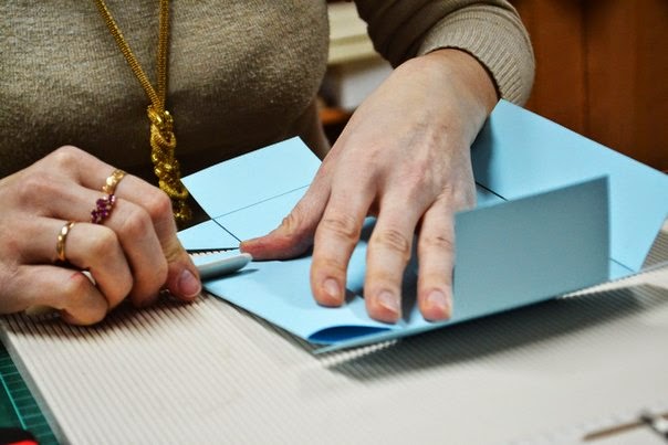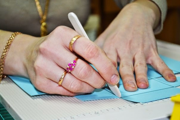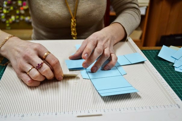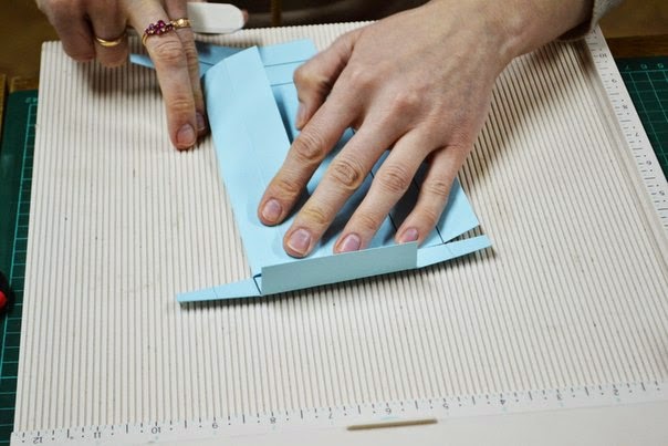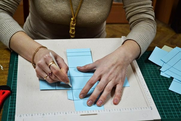 после того как вырезали все заготовки, начинаем биговать по полоскам, для того чтобы загибы смотрелись красиво и ровно