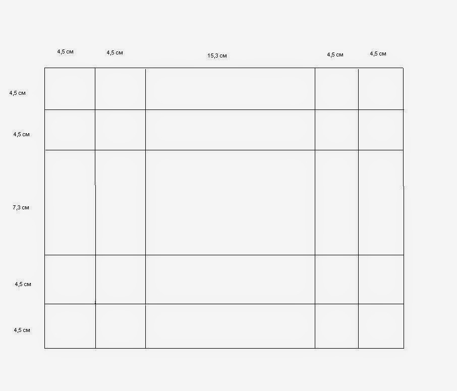 (4,5 + 4,5 + 7,3 + 4,5 + 4,5) 25,3 см на (4,5 + 4,5 + 15,3 + 4,5 + 4,5) 33,3 см