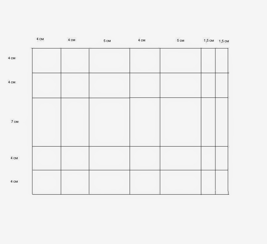 размер будет (4 + 4 + 5 + 4 + 5 + 1,5 + 1,5)=25 см на (4 + 4 + 7 + 4 + 4)=23 см