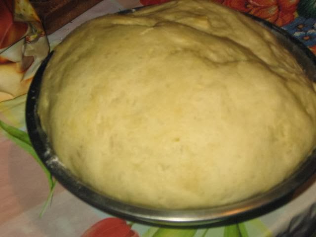 Замешиваем тесто. В подошедшие дрожжи добавить яйца, постепенно подмешиваем муку. На руки выливаем примерно 30 мл растительного масла, чтобы тесто не прилиавло к рукам. Сливочное масло в тесто не добавляем! Замесили не очень крутое, гладкое тесто, поставили его в тёплое место для подъёма примерно на 2 часа.